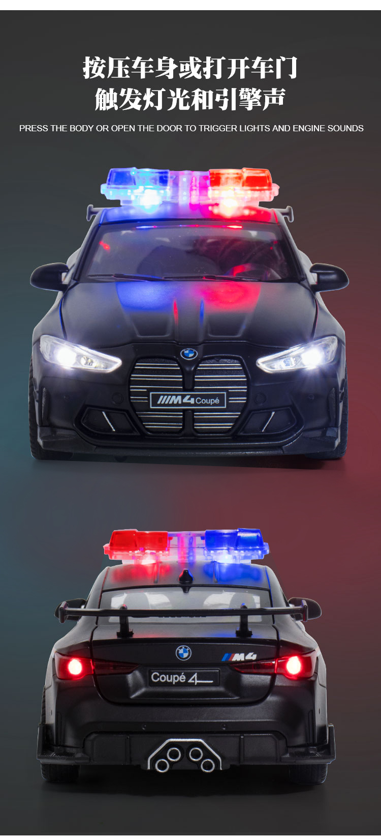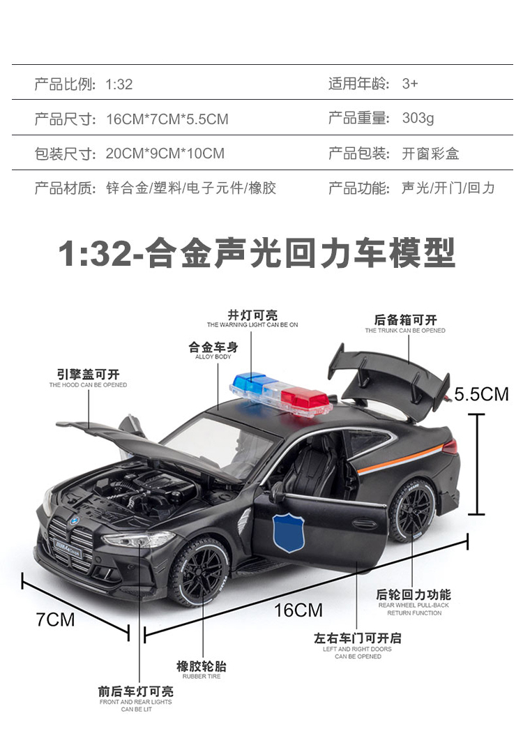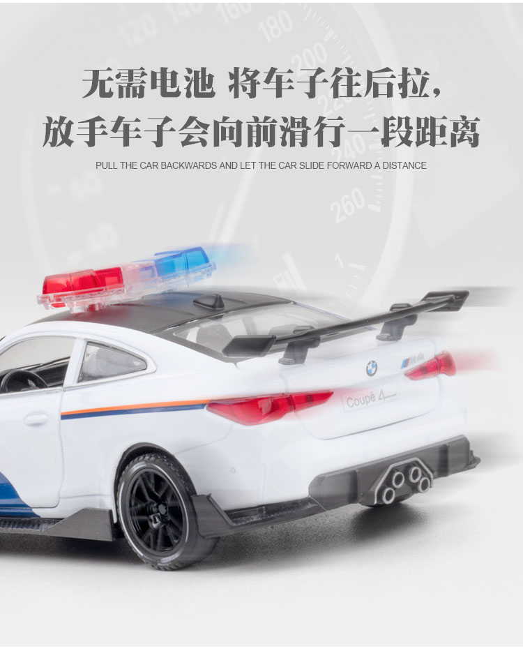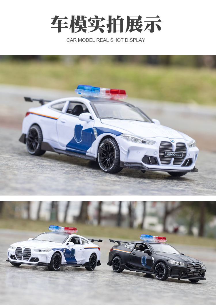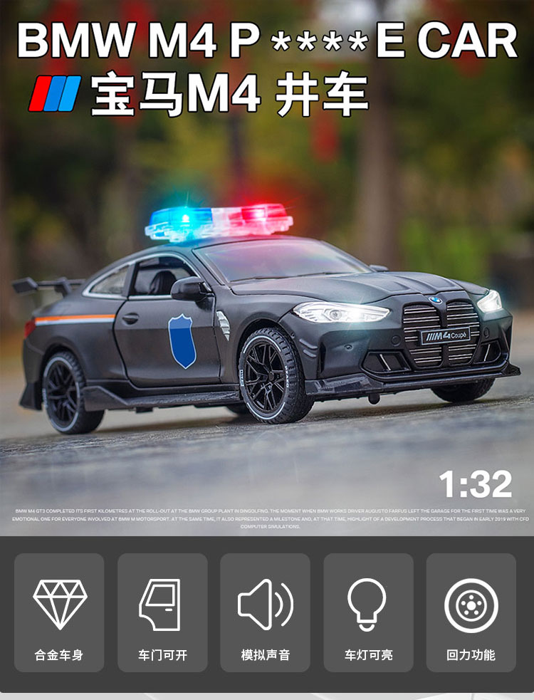 【宝马M4J车】合金车身四开门汽车模型 儿童玩具车J笛车模