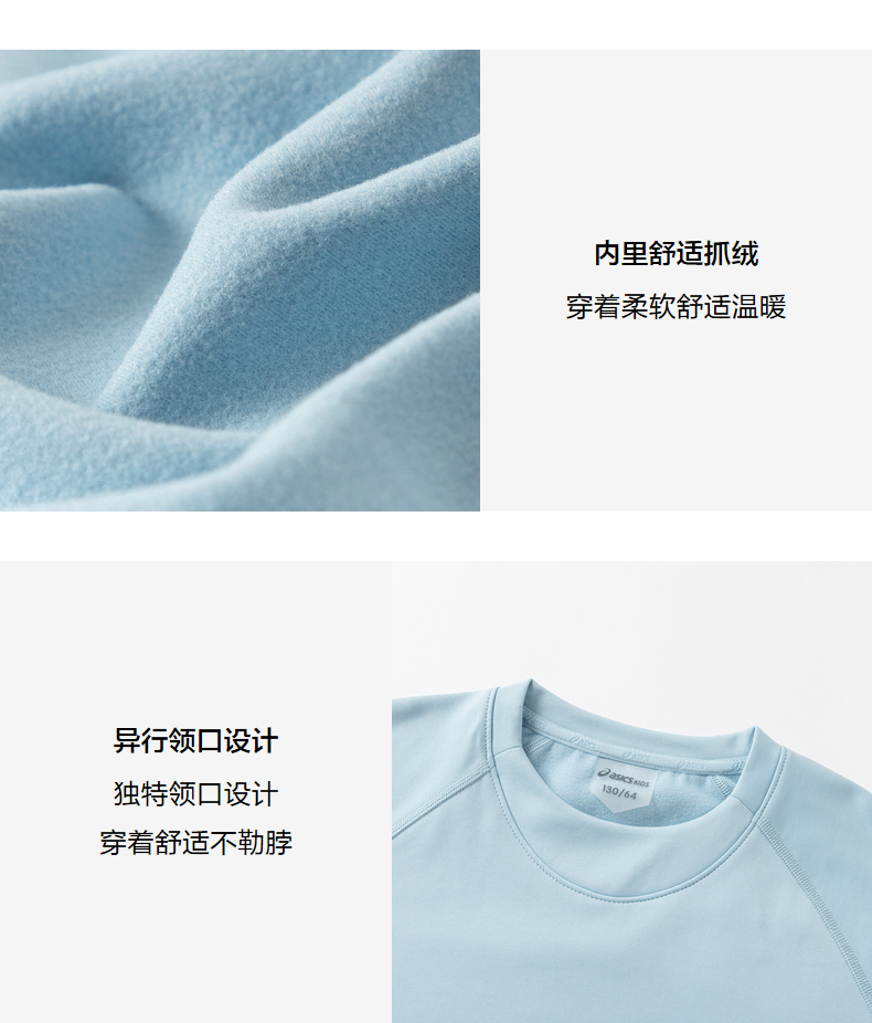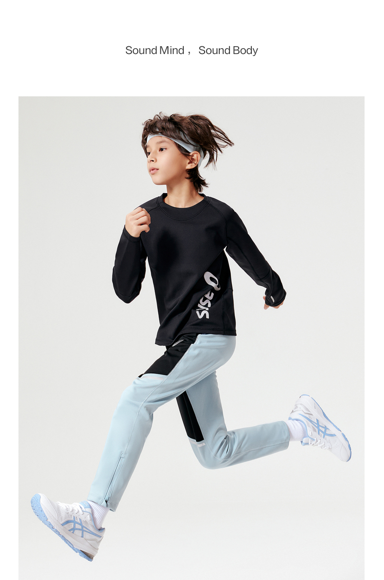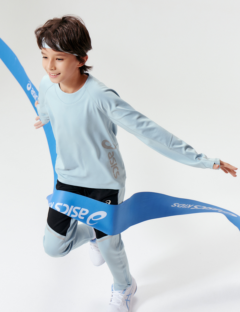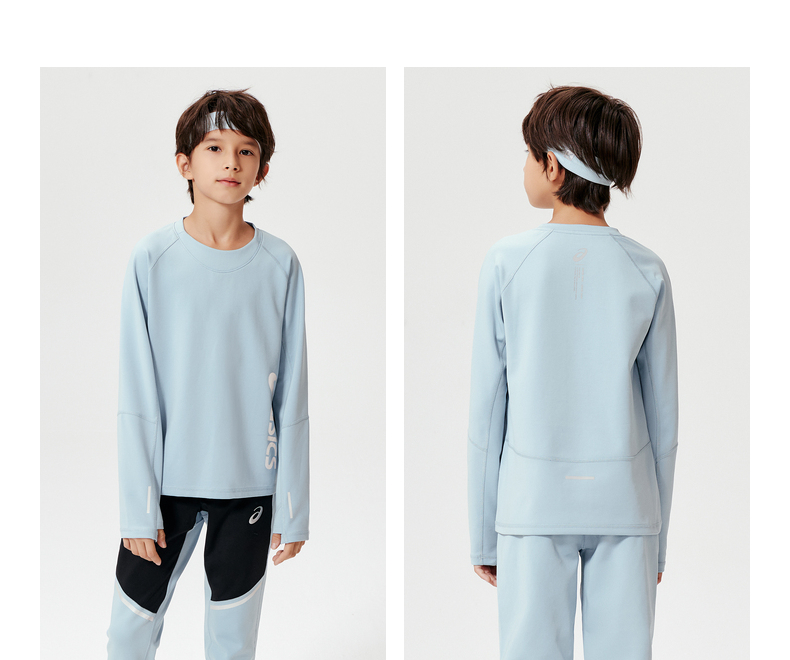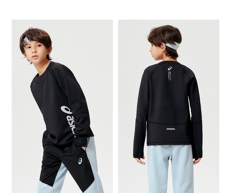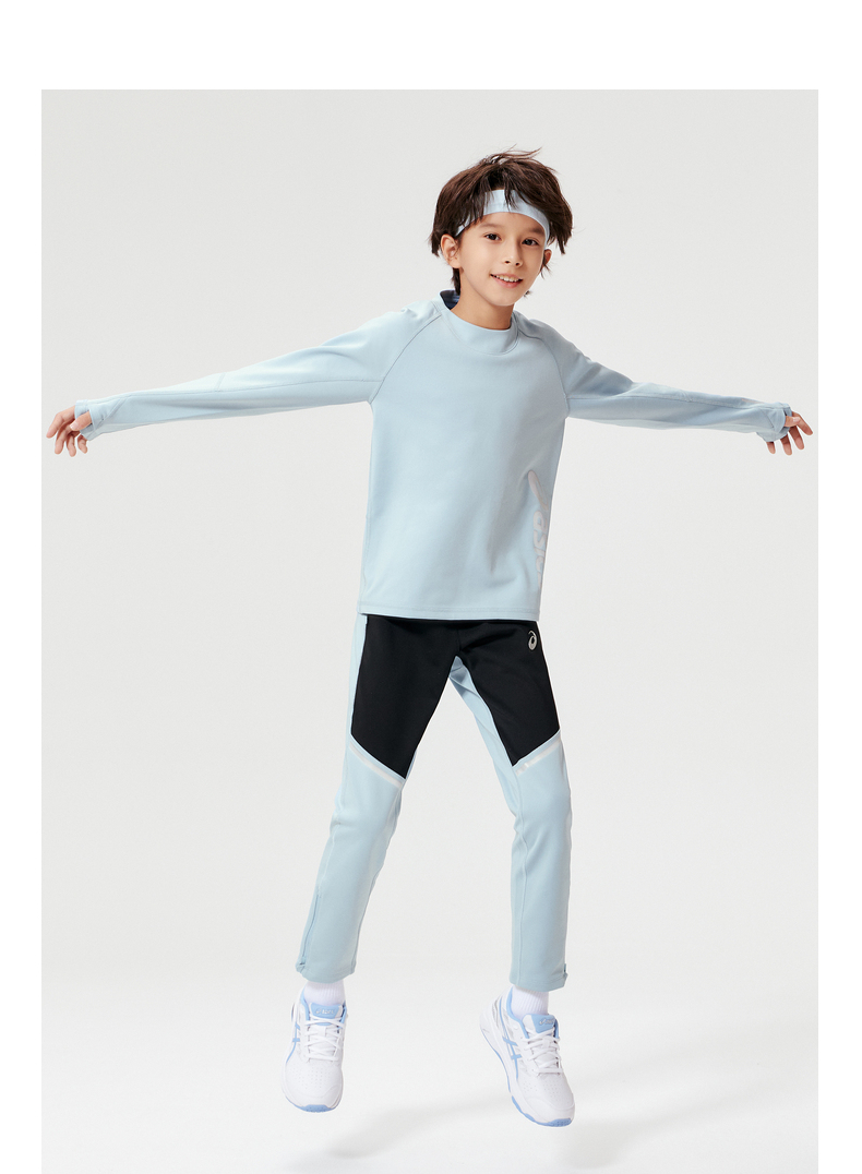 ASICS/亚瑟士童装2023年秋冬男童运动高弹加绒保暖针织长袖T恤