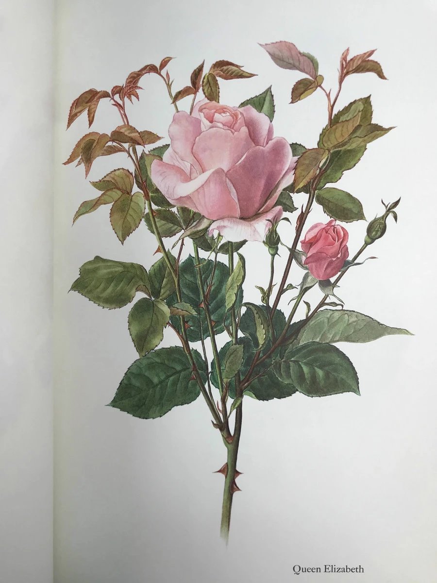 47*31cm!1965年 玫瑰花的荣耀 数十幅水彩画插图 精装带书匣
