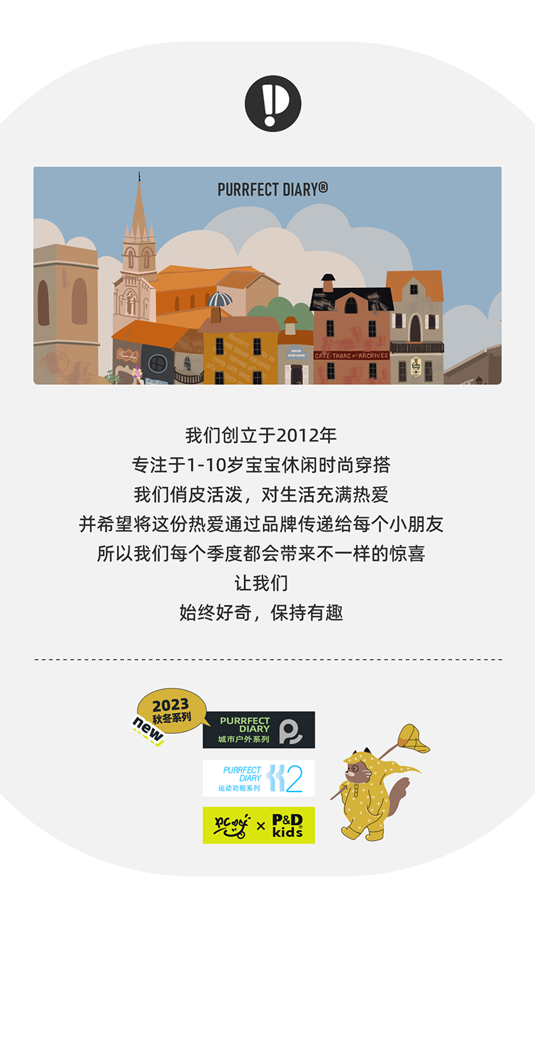 Purrfect-Diary专注于贴近自然随性的穿着概念,轻奢平价的童装文化传播,在产品设计上更加注重婴童穿着的舒适性、安全性、更出众的国际化品牌,将欧美的育婴文化在中国进行深入的传播与推广。