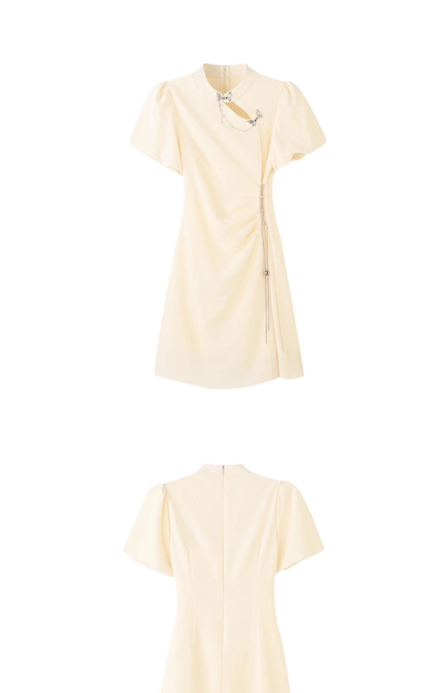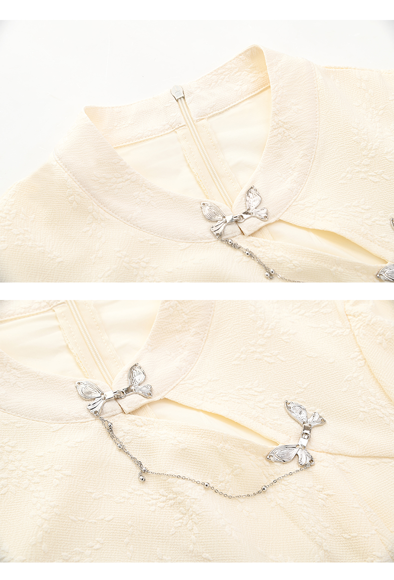 女装立领金属蝴蝶链装饰旗袍型连衣裙-55Q4221013