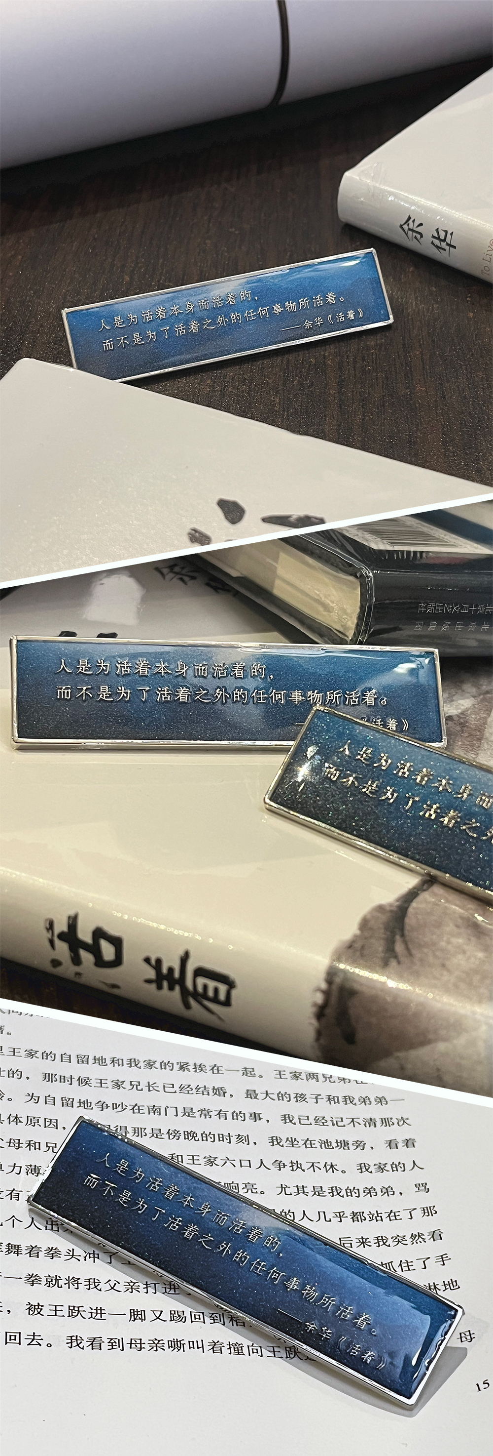 钟书阁余华金句系列揉纹纸包金句书签刻徽章胸针文创周边