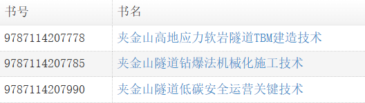 书名:夹金山高地应力软岩隧道TBM建造技术