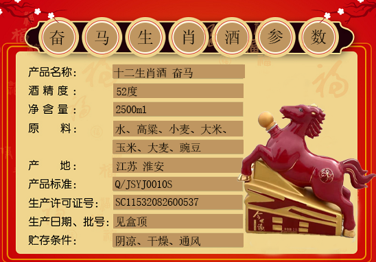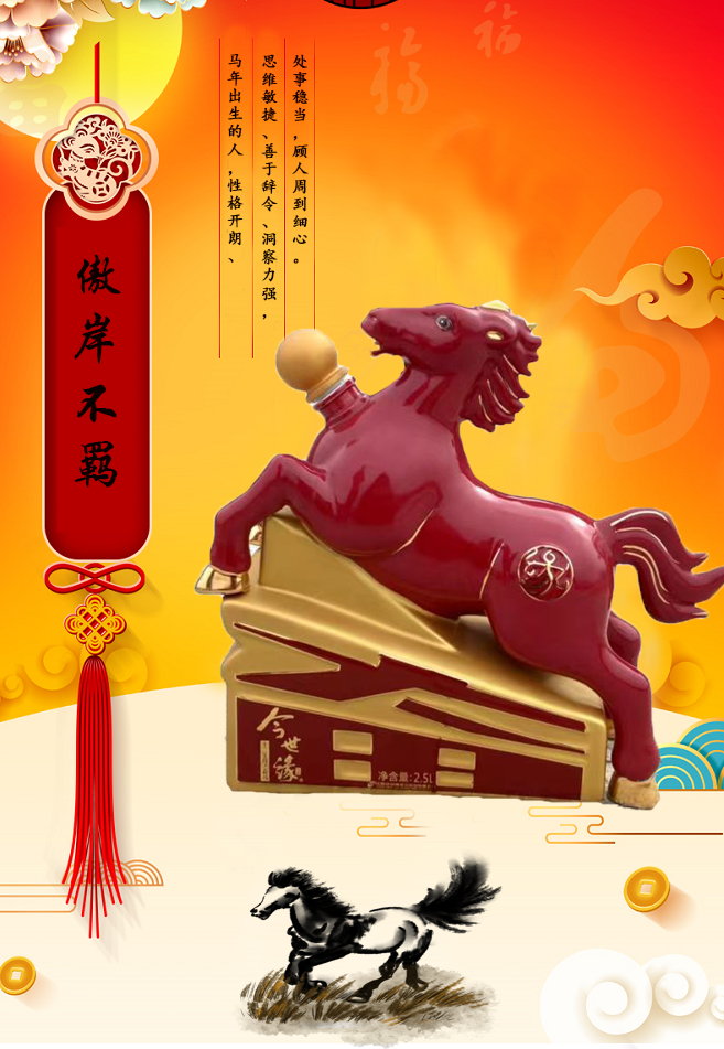 52度2.5L今世缘十二生肖奋马珍藏纪念酒