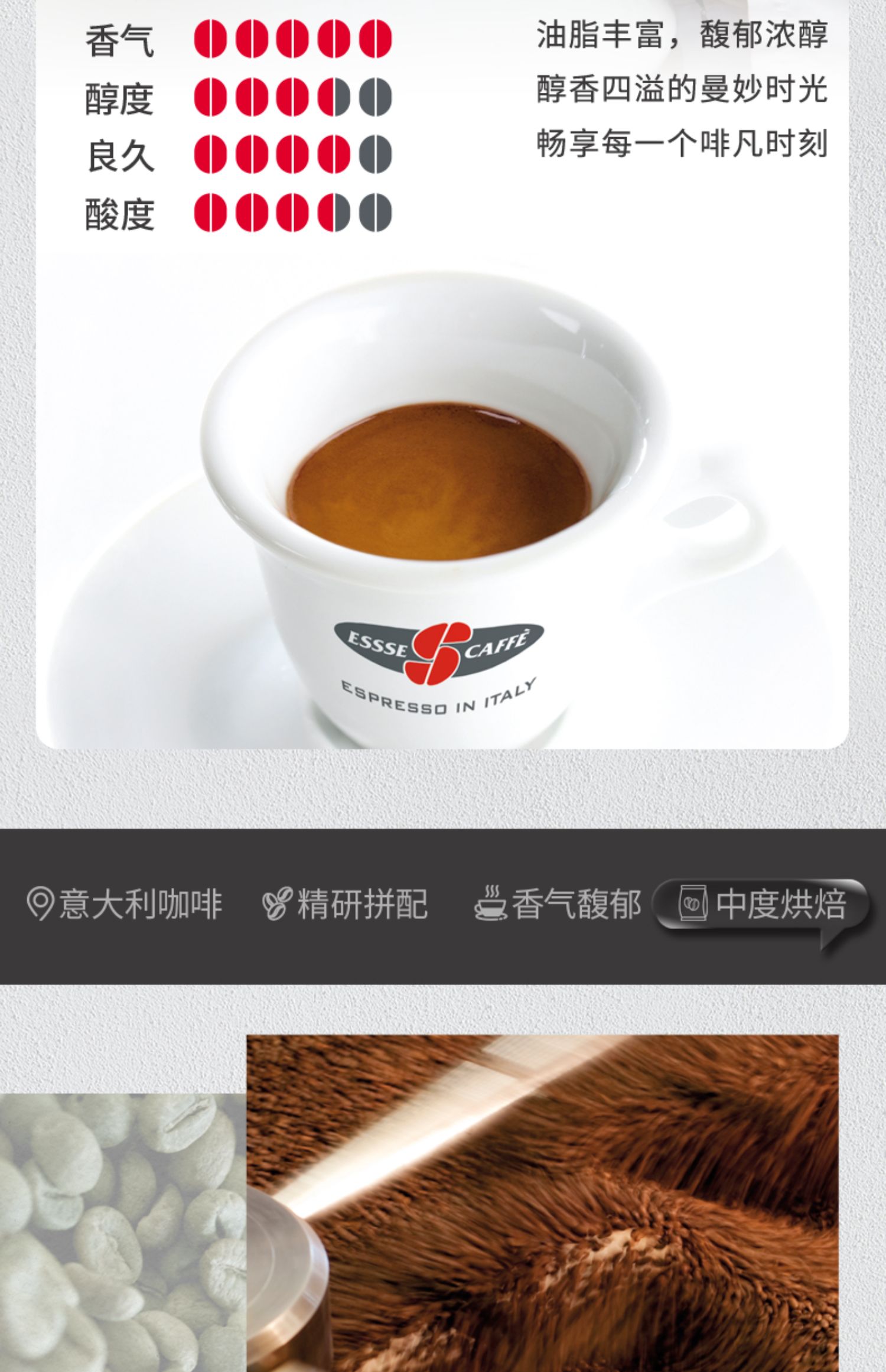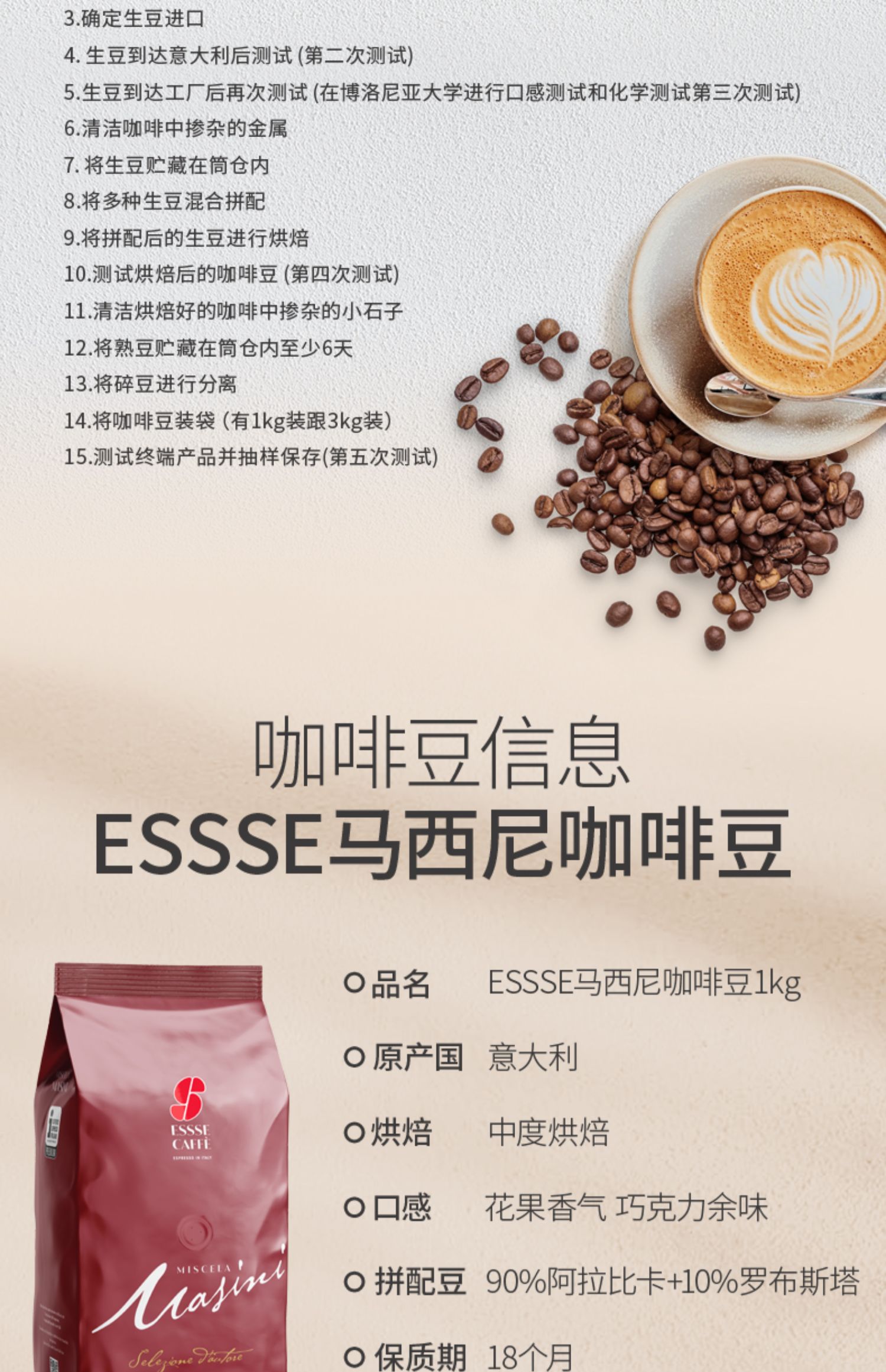 ESSSE艾瑟意式浓缩烘焙咖啡豆(马西尼)1000g