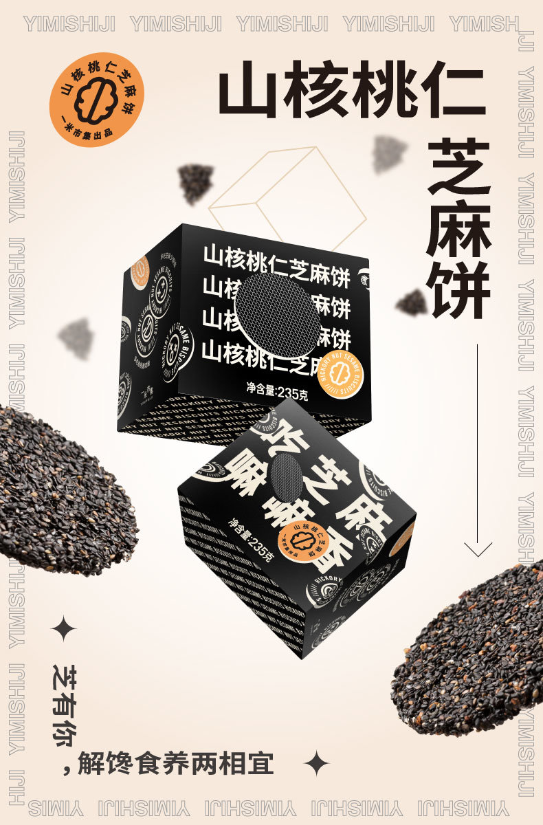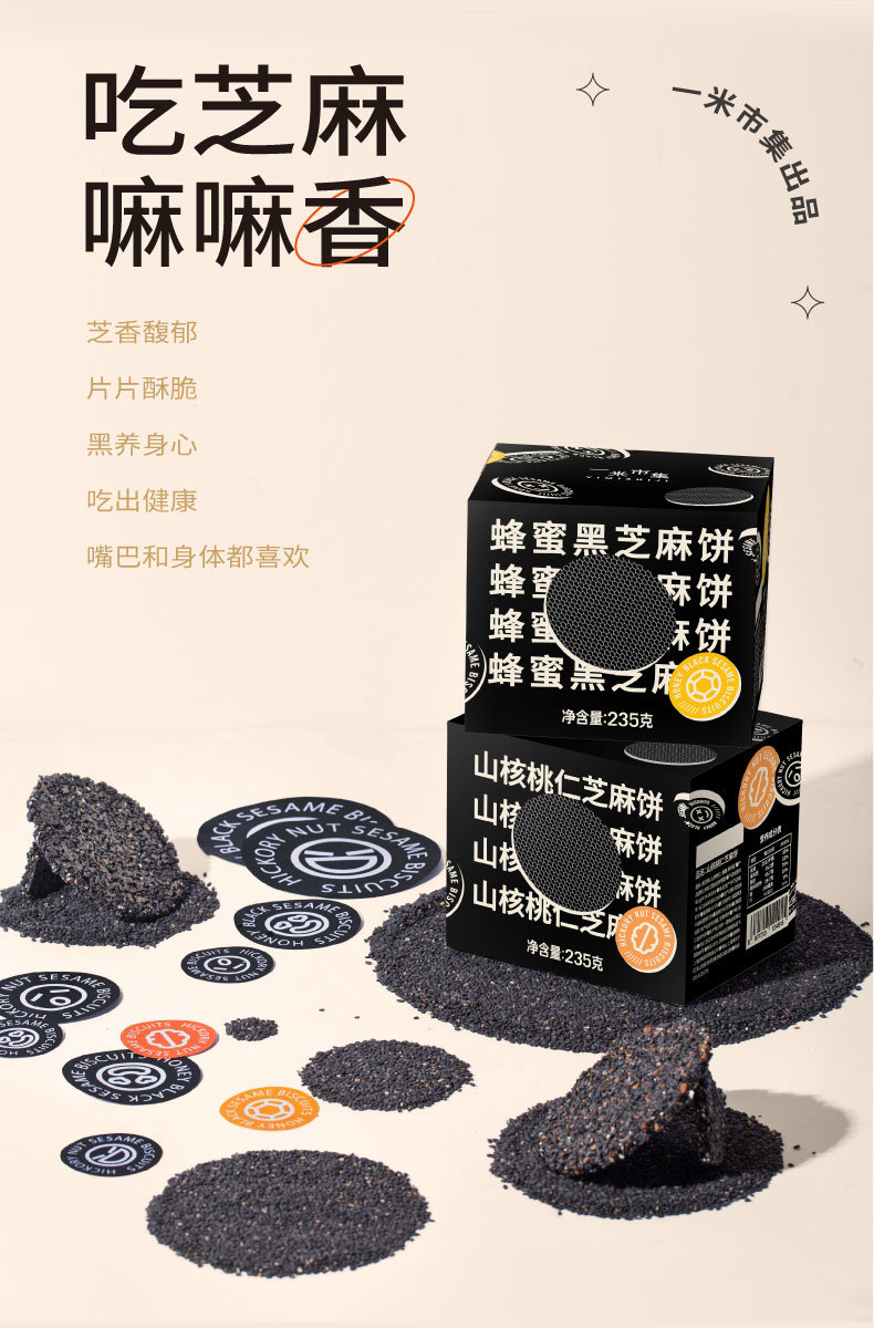 一米市集严选 山核桃仁芝麻饼235g/盒 高钙高蛋白 酥脆醇香