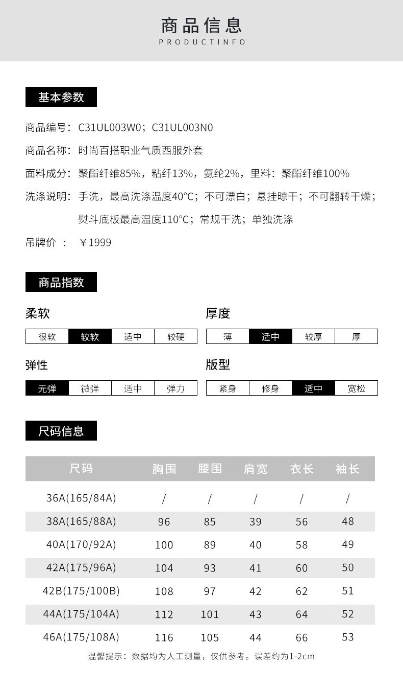 皮尔卡丹女装春季新款简约修身百搭多色西服上衣C31UL003