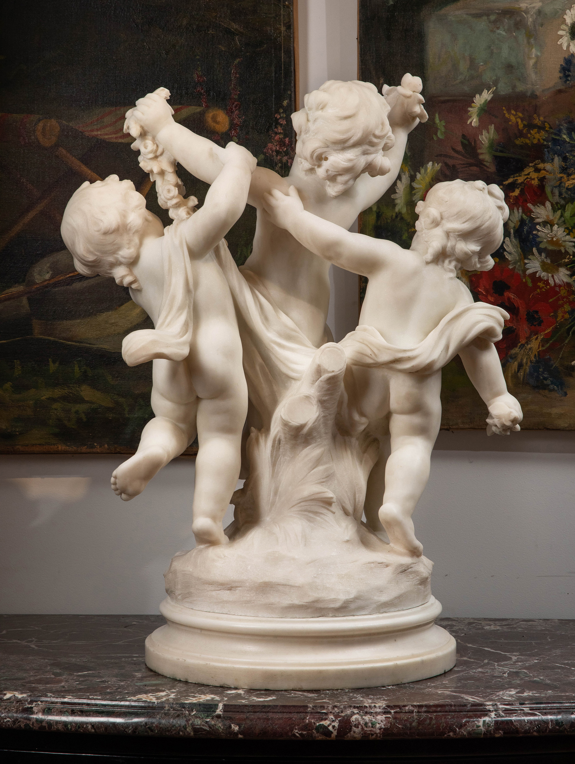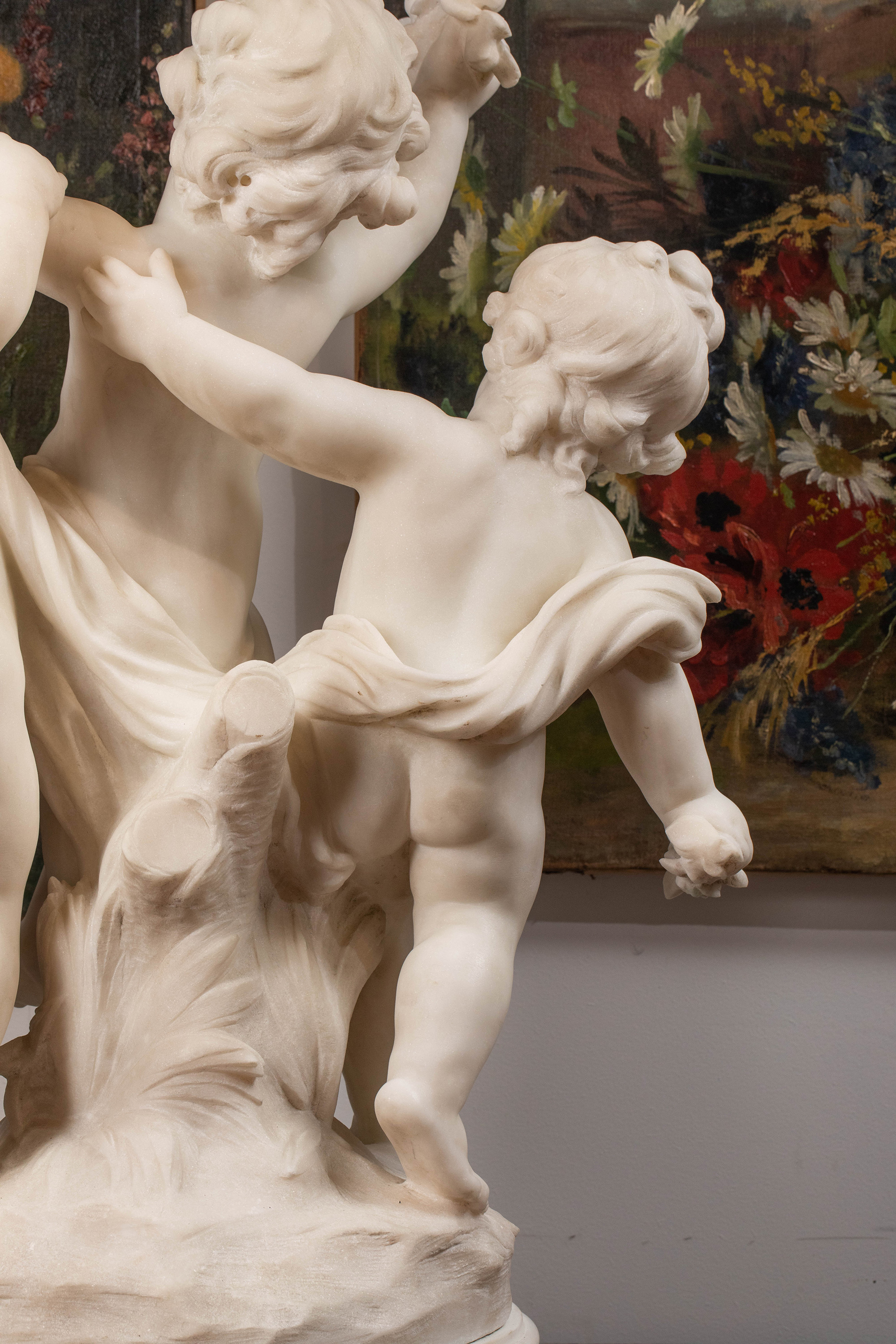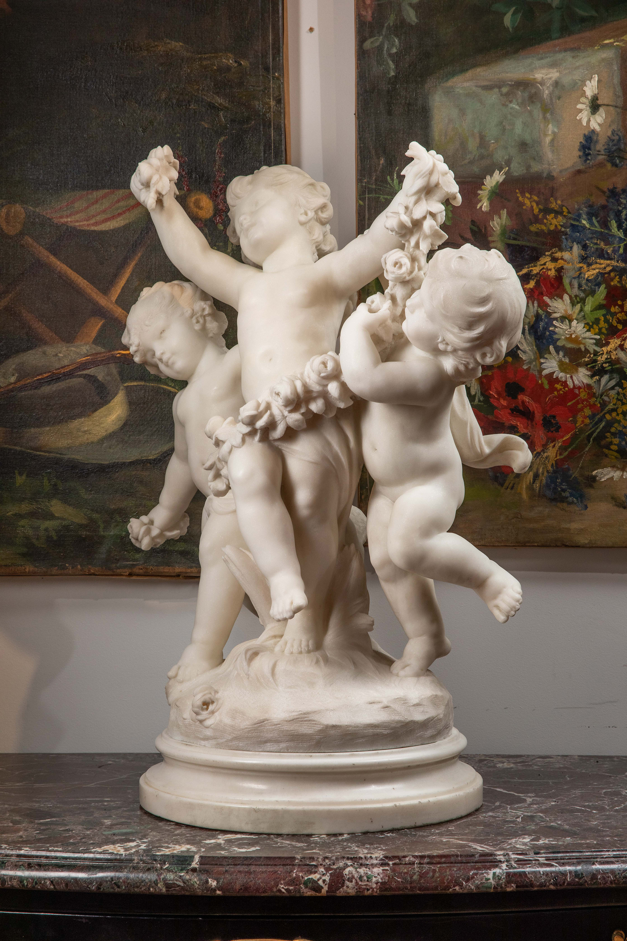 19世纪末20世纪初法国雕塑家Hippolyte Moreau签名创作小天使主题大理石雕塑