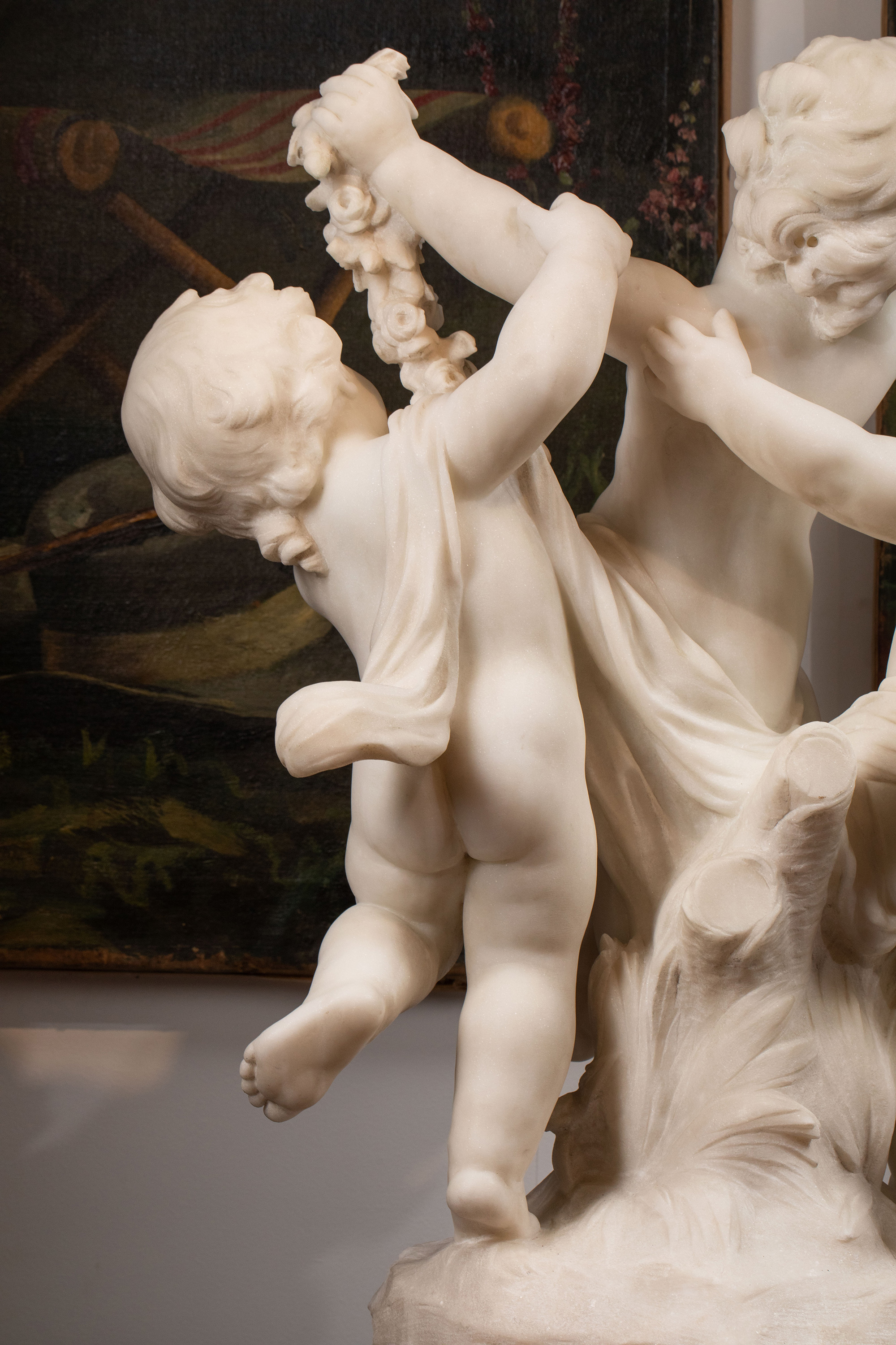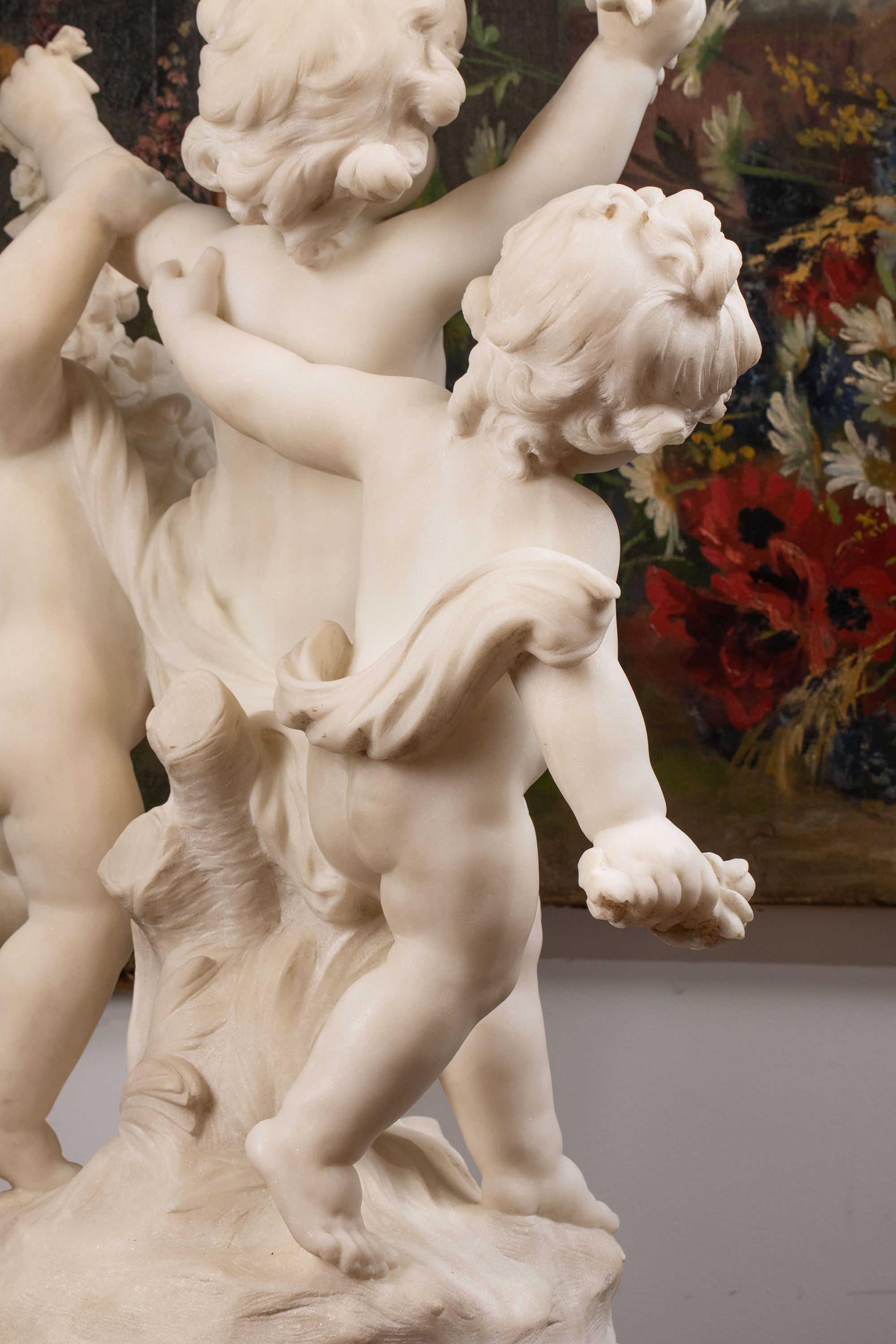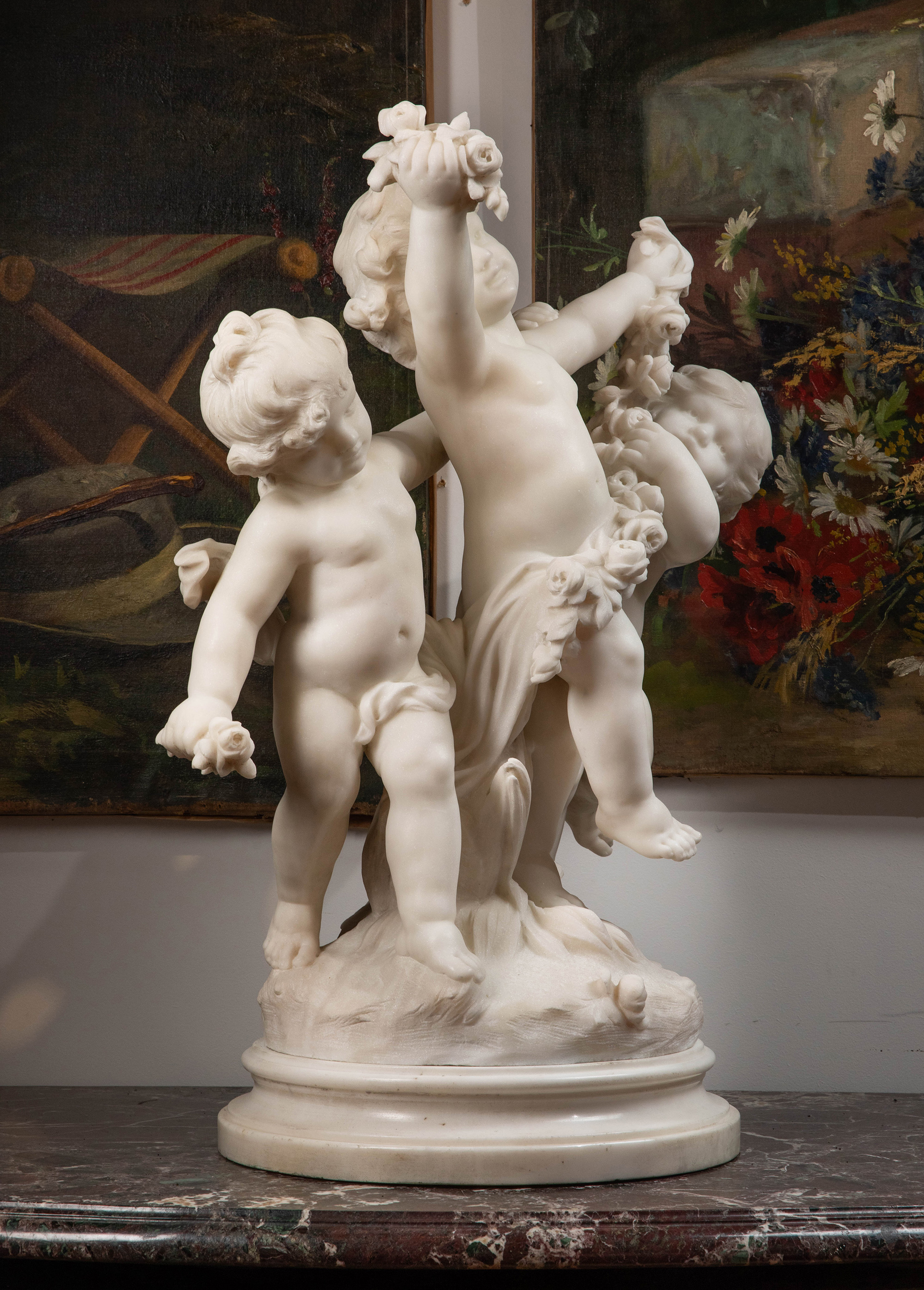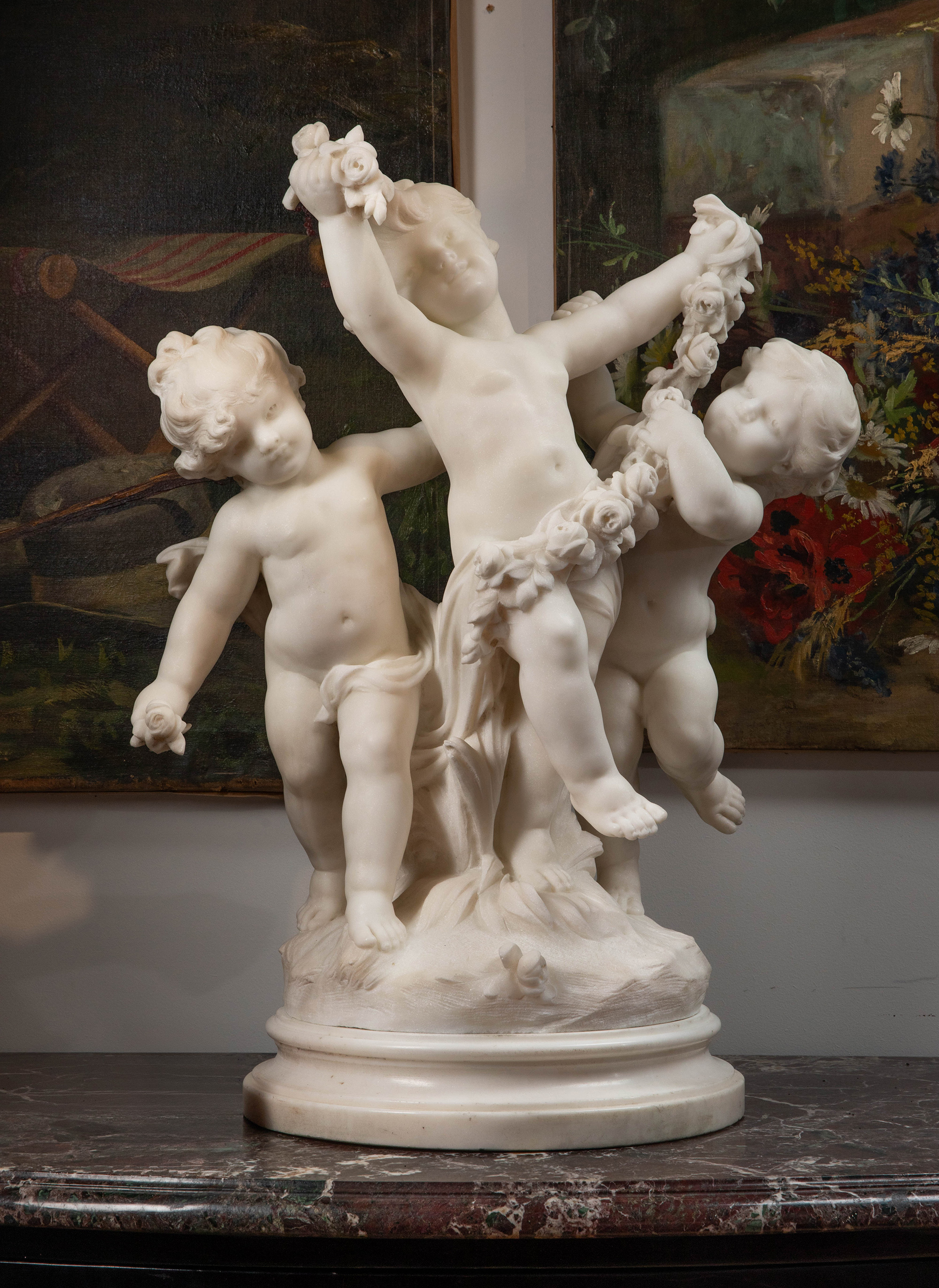 19世纪末20世纪初法国雕塑家Hippolyte Moreau签名创作小天使主题大理石雕塑