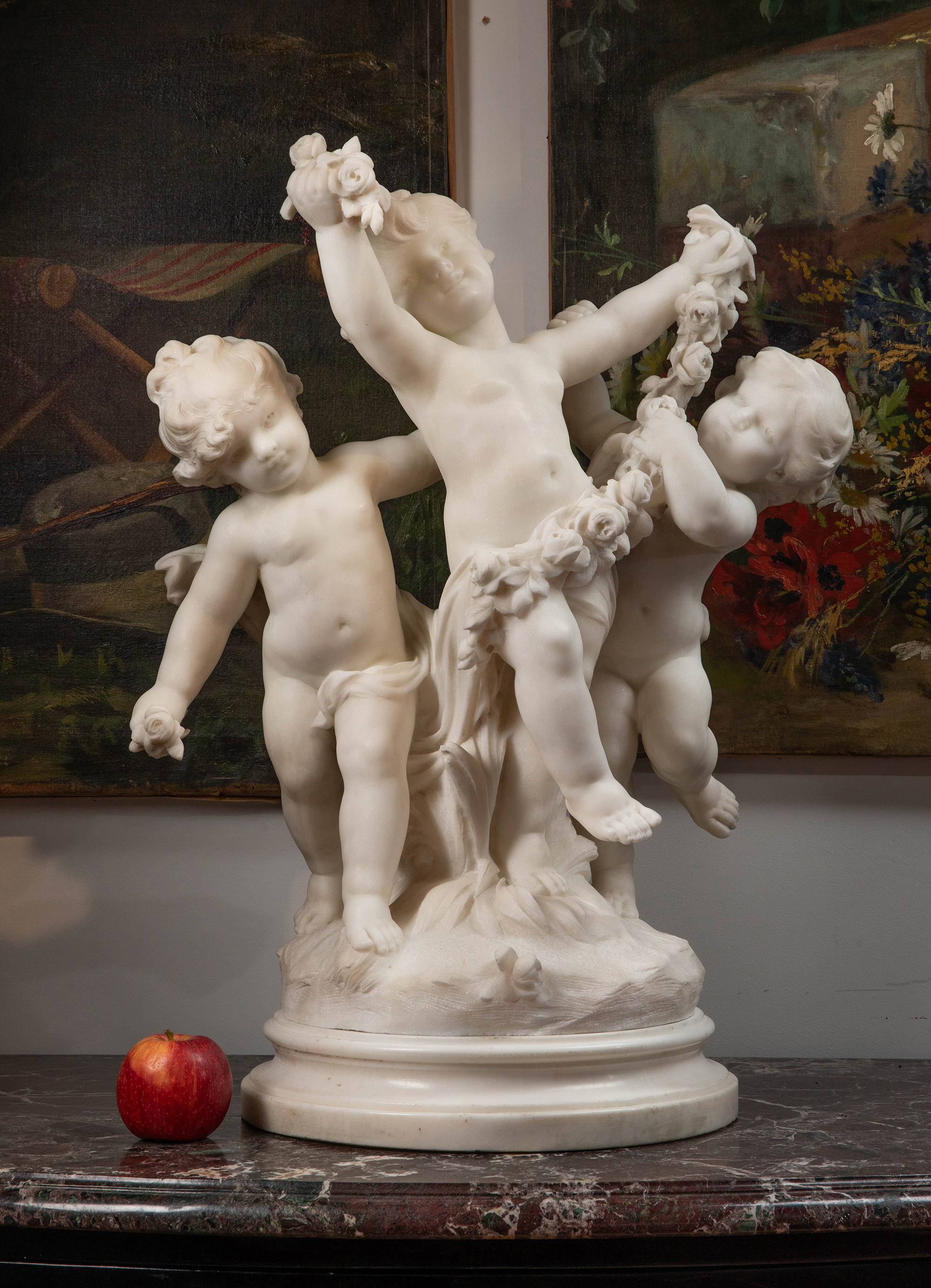 独角鹿西洋古董19世纪末20世纪初法国雕塑家Hippolyte Moreau签名创作小天使主题大理石雕塑