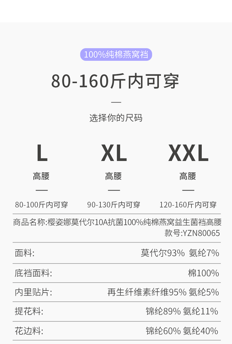 【品名】:樱姿娜莫代尔高腰轻塑燕窝裤80065