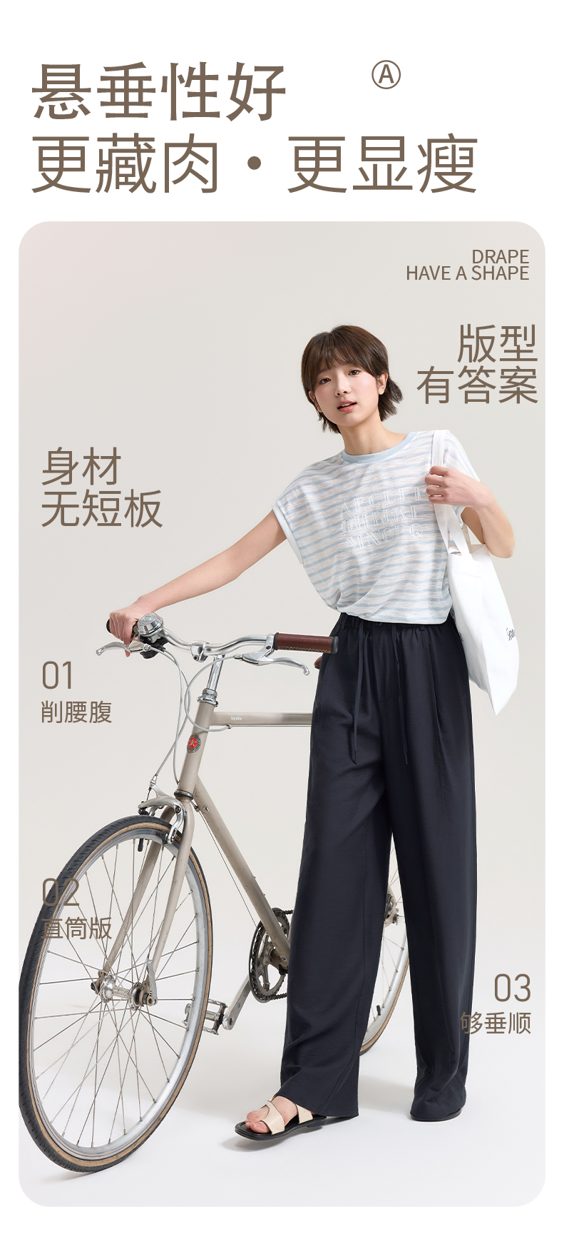 夏日松弛感穿搭密码 【QINGFAN 冰竹垂垂裤】手感细腻柔滑 天然竹浆纤维面料 窄版H型不挑腿型 藏肉更显瘦LYZ