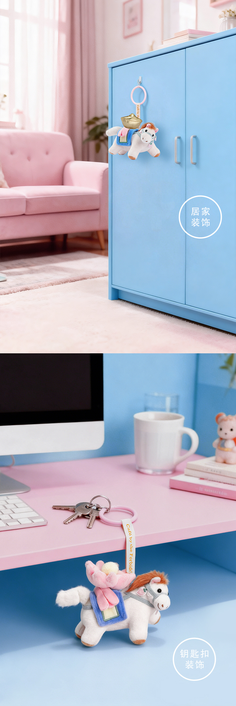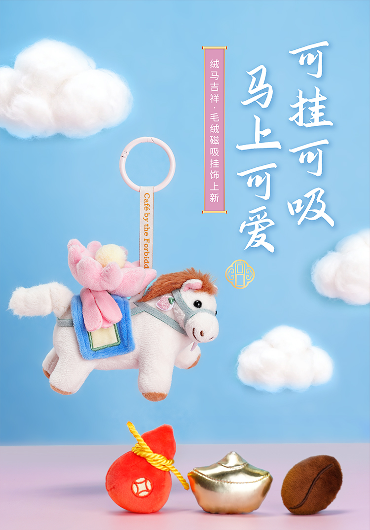 角楼咖啡绒马吉祥绒毛磁吸挂饰