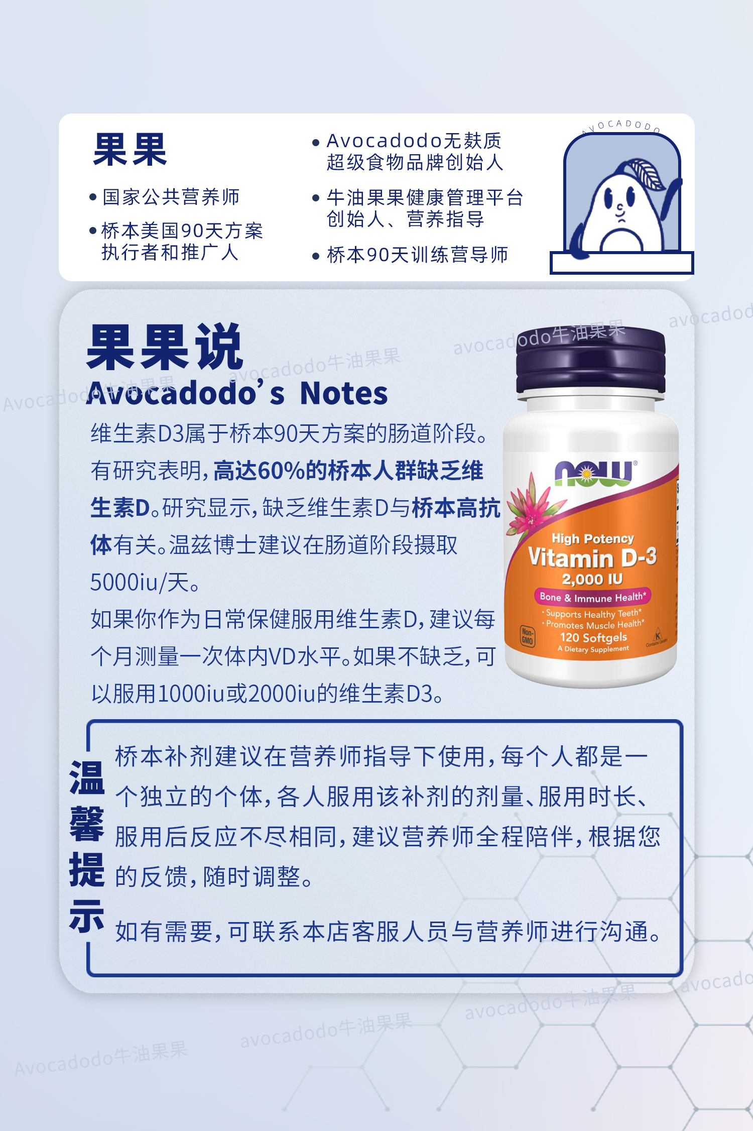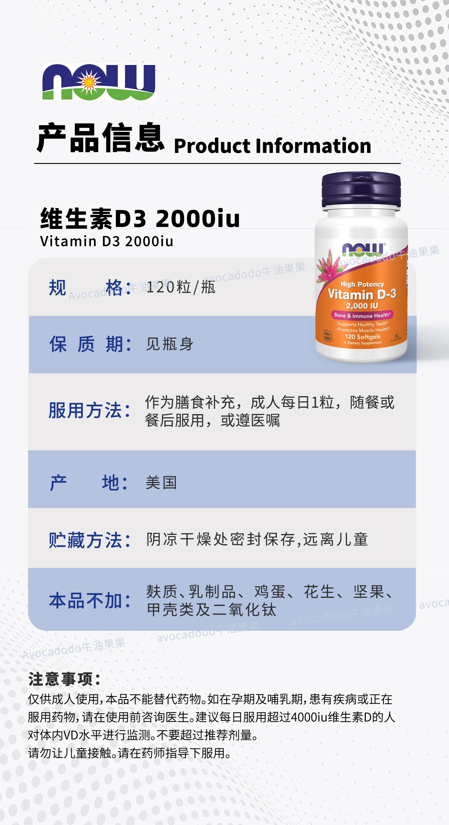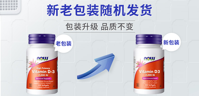 保税仓NOW诺奥维生素D3软胶囊2000IU 120粒不加大豆桥本