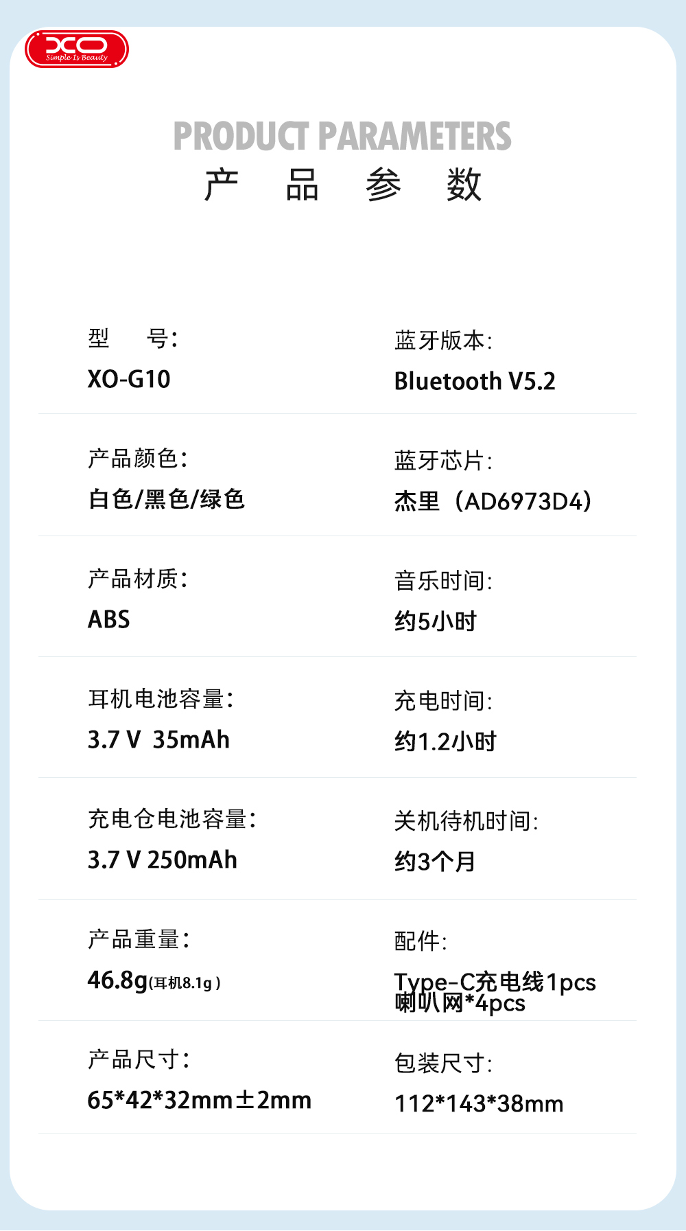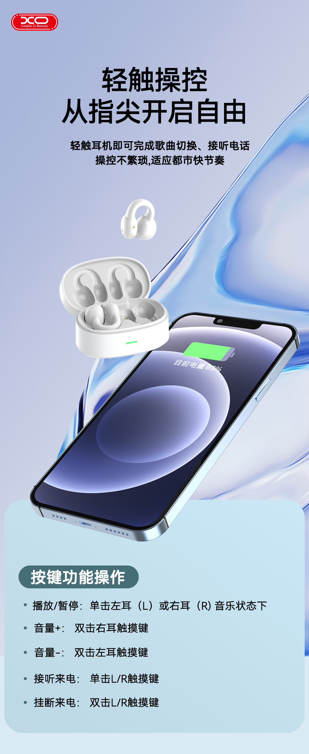 耳环空气传导TWS蓝牙耳机XO-G10黑色、白色、蓝色