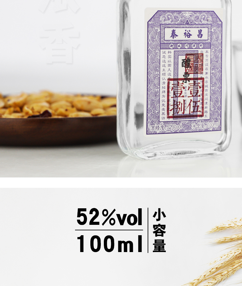 [小醴票]52度-泰裕昌-浓香型白酒-100ml-纯粮酒