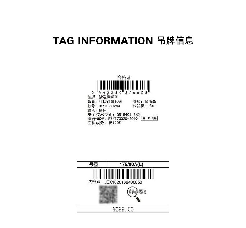 gxg.jeans男装冬季热卖收口针织长裤JEX10201884