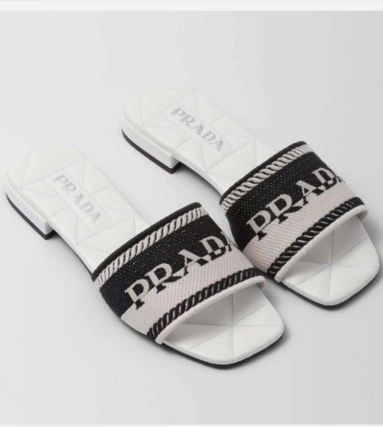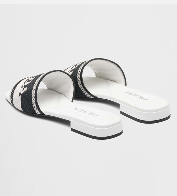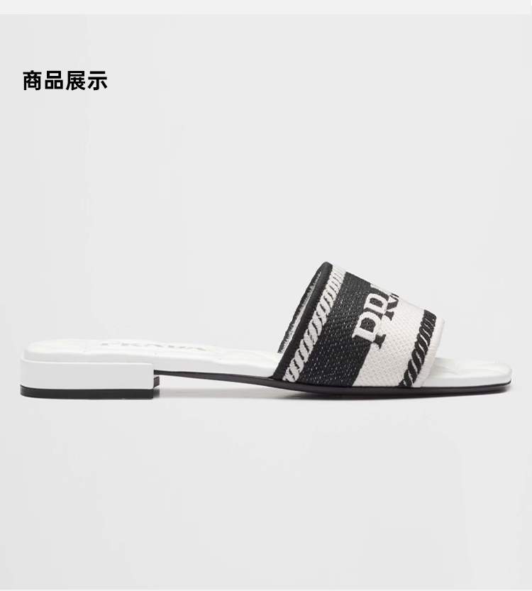 PRADA 普拉达 女士字母徽标刺绣布休闲拖鞋 混色 1XX612 3LKB F0N12