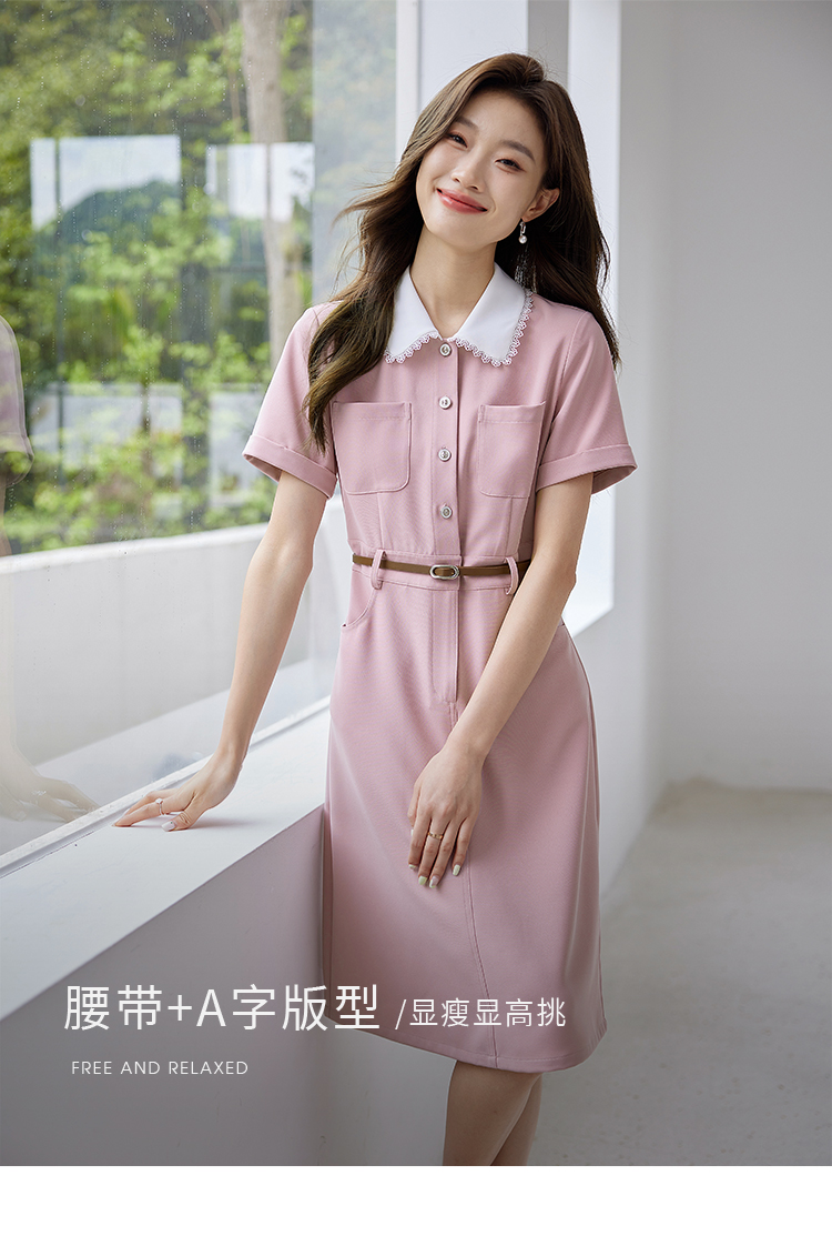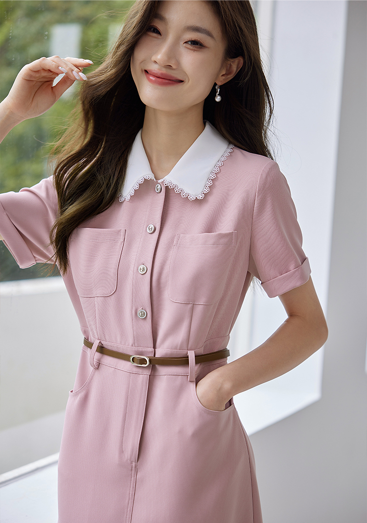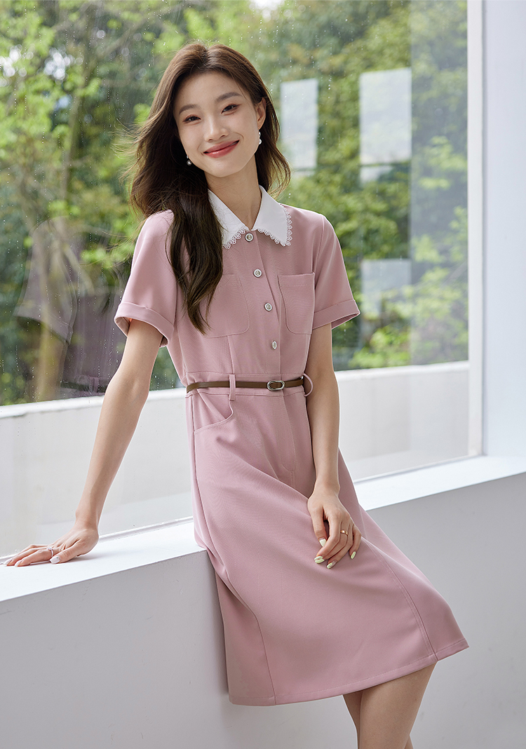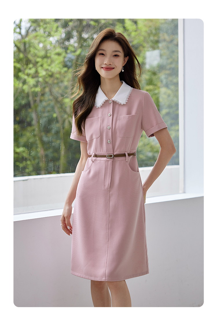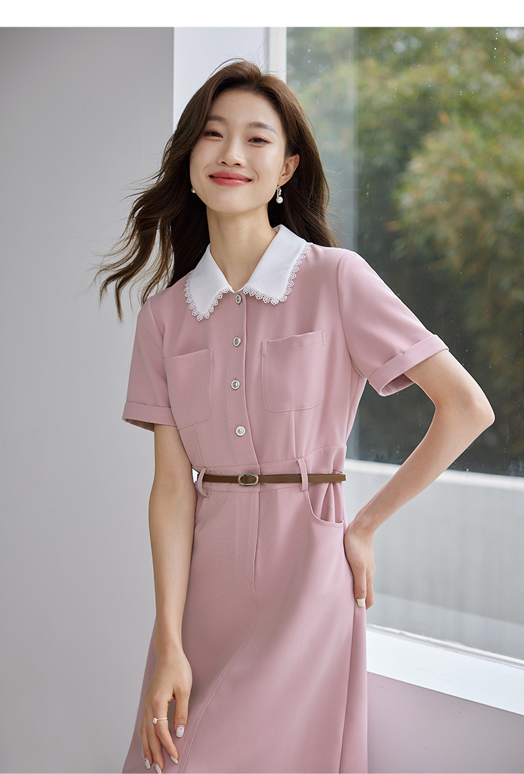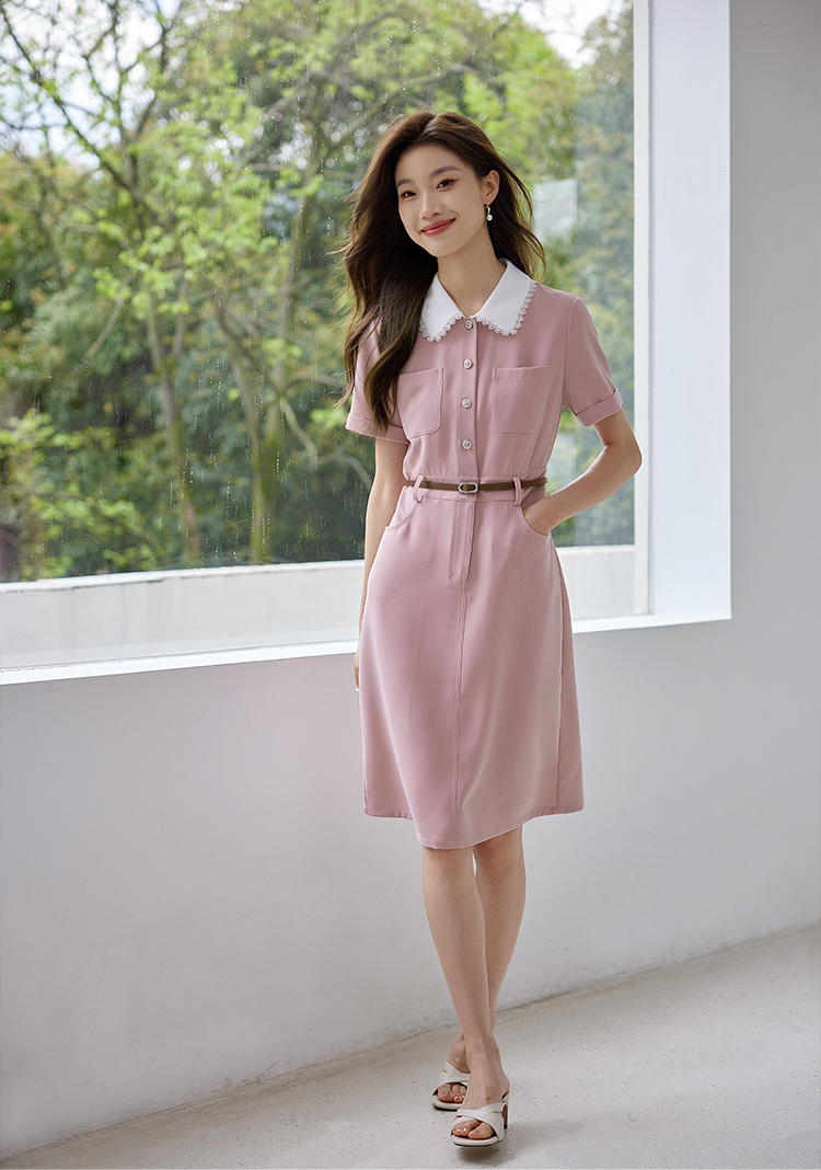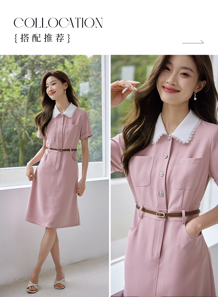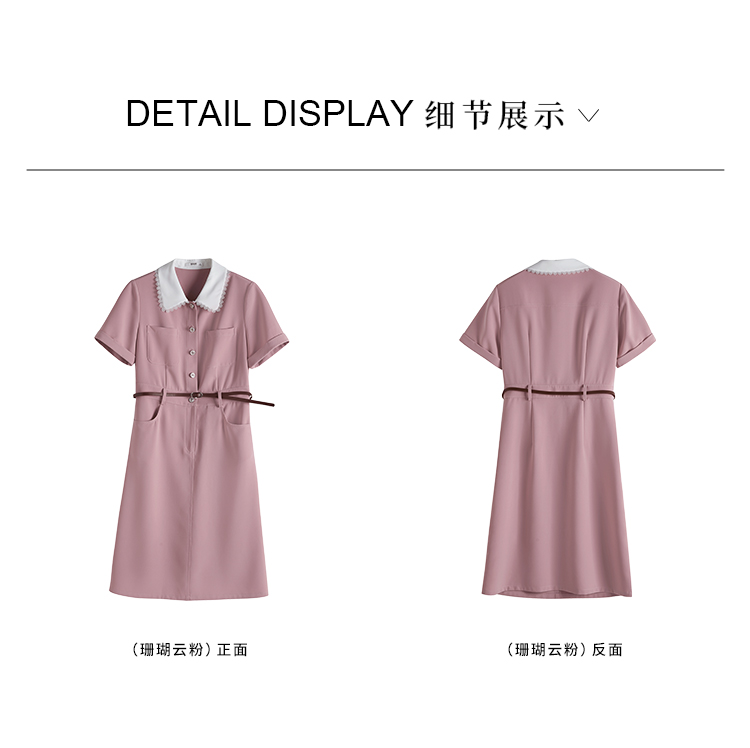 【专属特价】熙世界2025夏装新款工装小香风连衣裙设计感小众撞色娃娃领裙子