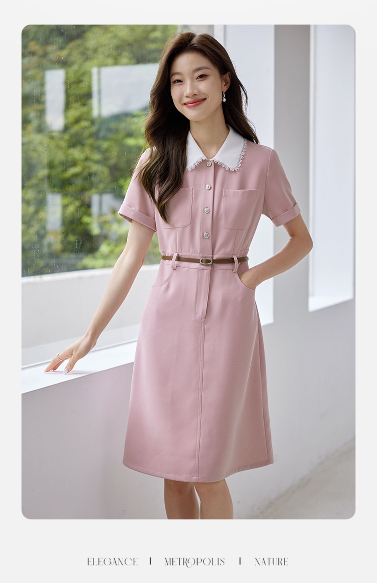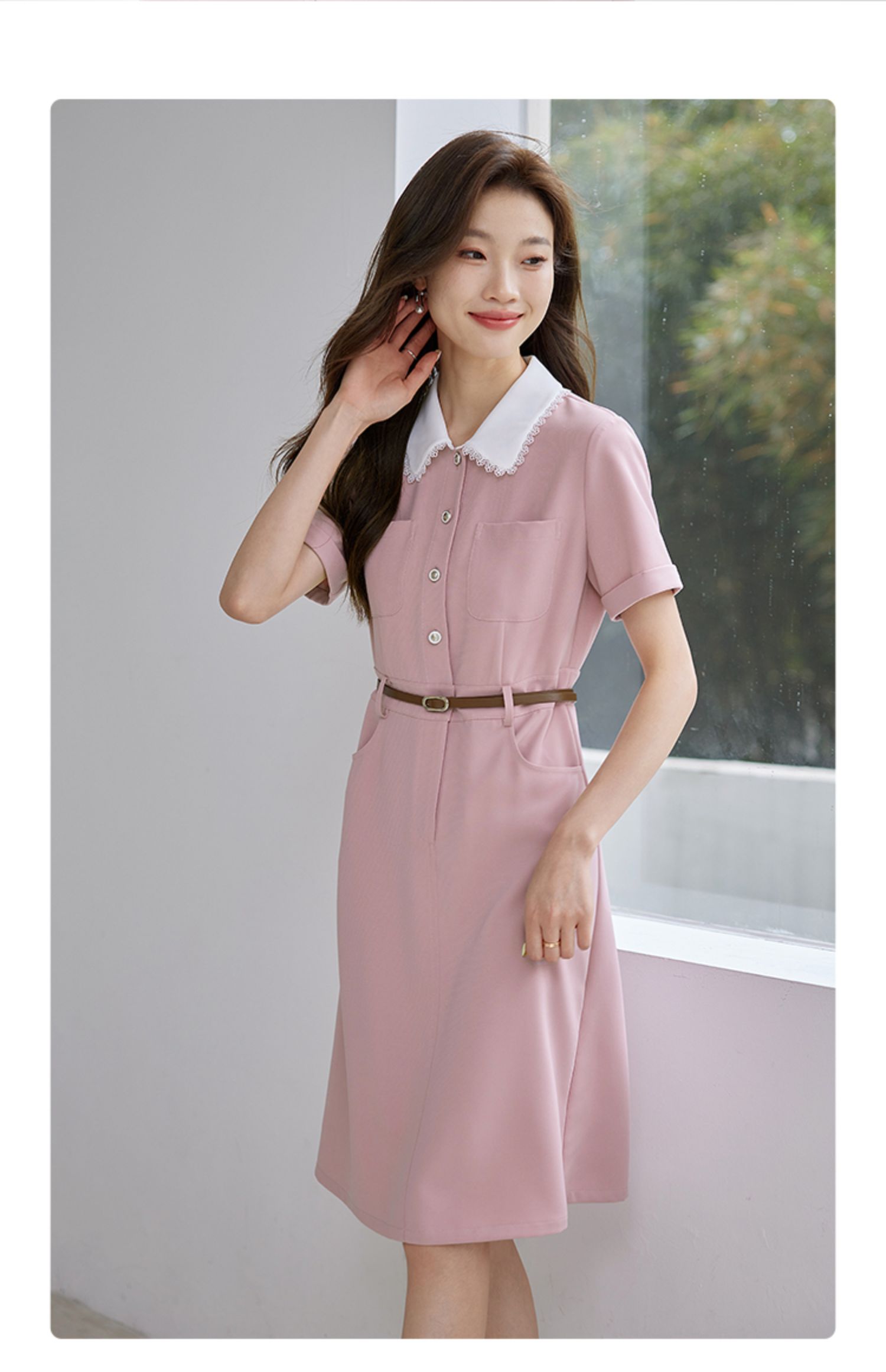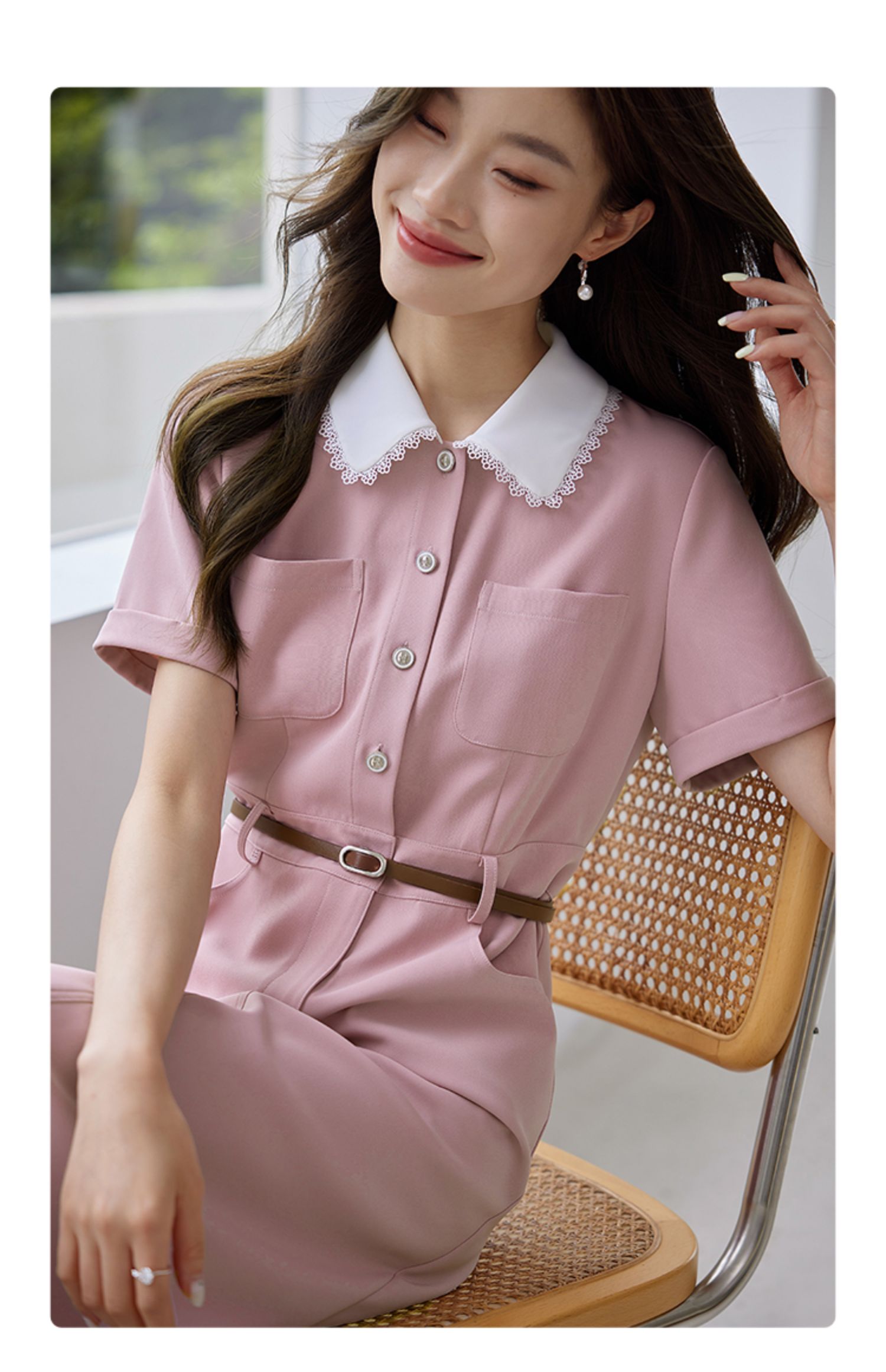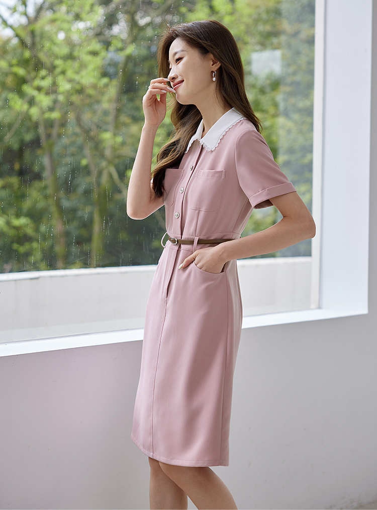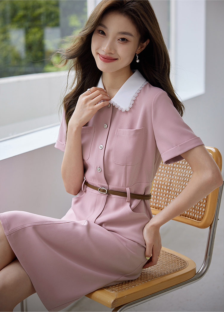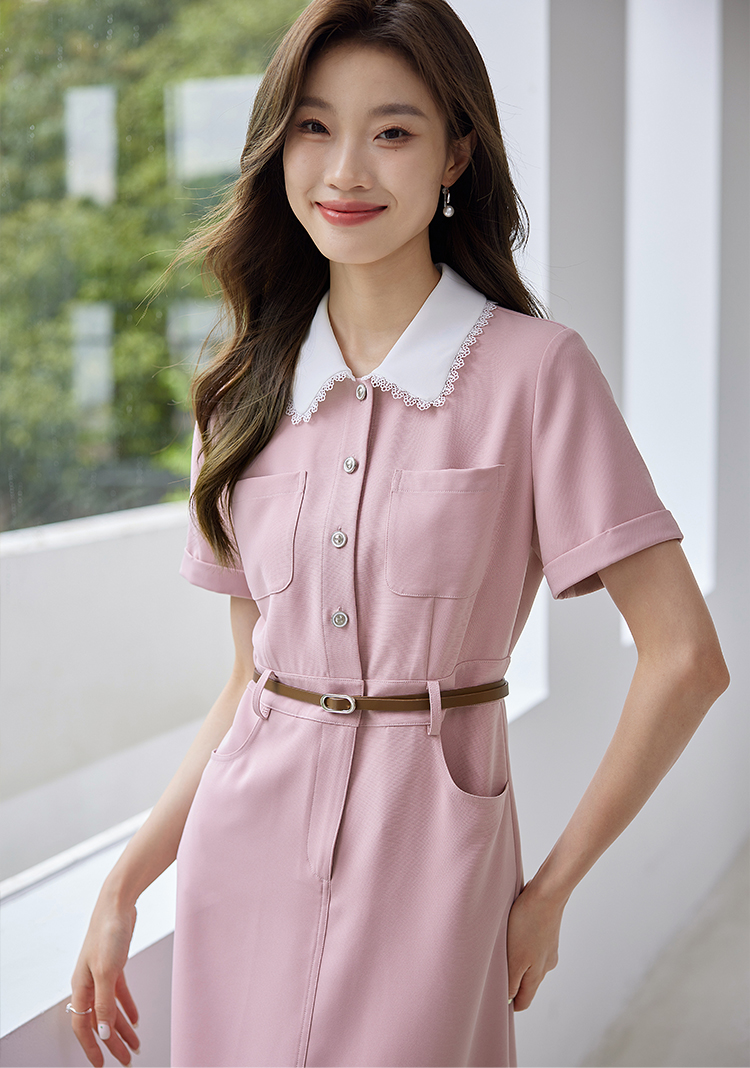 【专属特价】熙世界2025夏装新款工装小香风连衣裙设计感小众撞色娃娃领裙子
