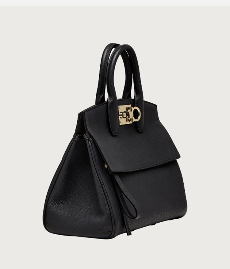 FERRAGAMO 菲拉格慕 女士小号 Gancini 装饰手提包 黑色 21 H159 718293