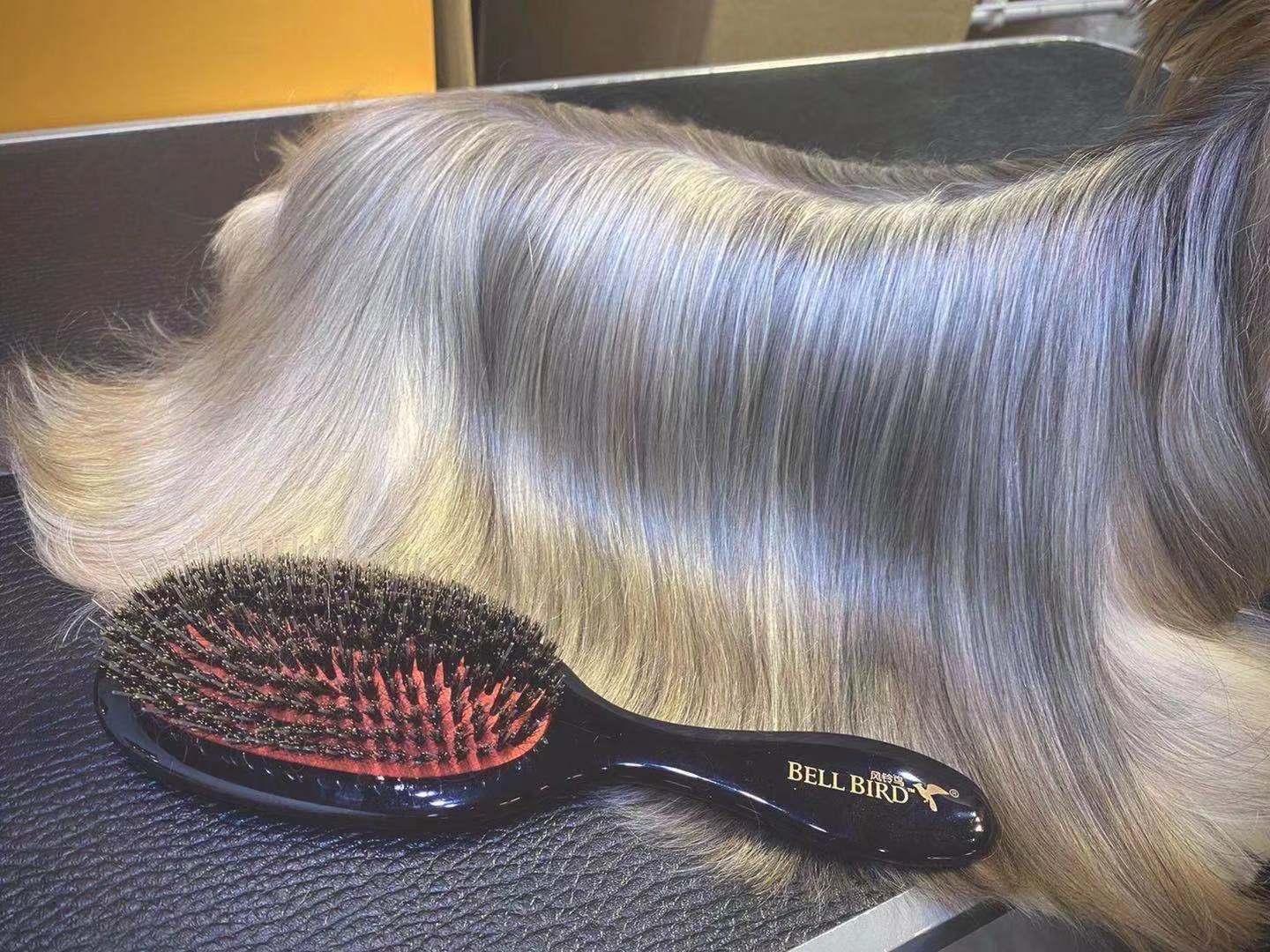 猪鬃毛刷: 也叫兽毛刷,用于给长毛犬种的毛发上刷油,或使毛发产生光泽。