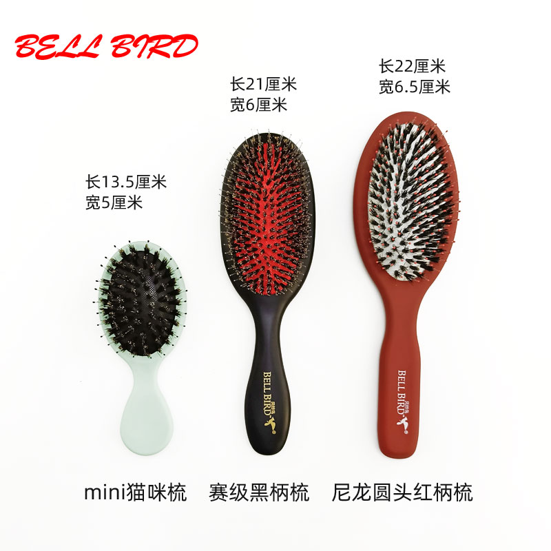 猪鬃毛尼龙刷 英国同款 赛级黑柄梳 尼龙圆头红柄梳 mini猪鬃猫咪梳