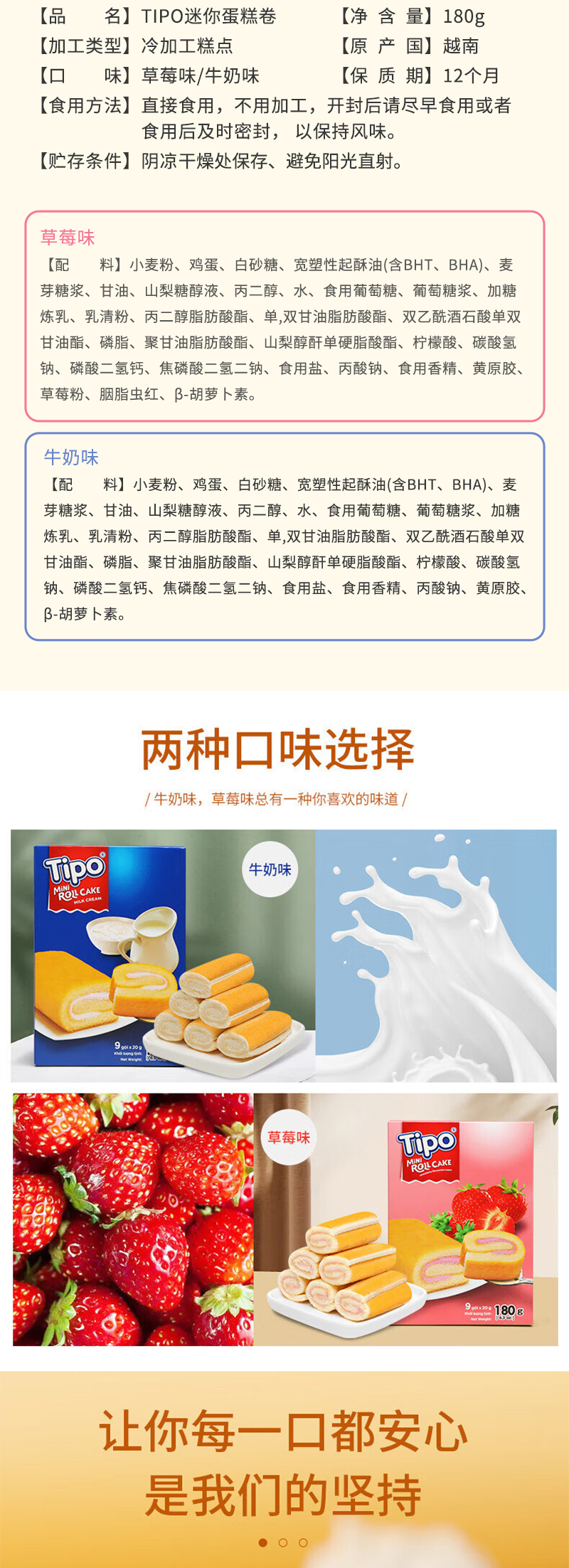 越南进口TIPO迷你蛋糕卷180g【牛奶I 草莓口味】