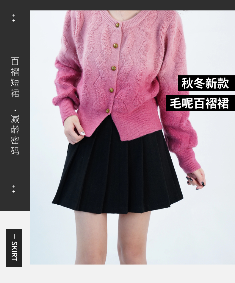 女装24秋冬新款百褶短裤裙2235-A66179-1▲