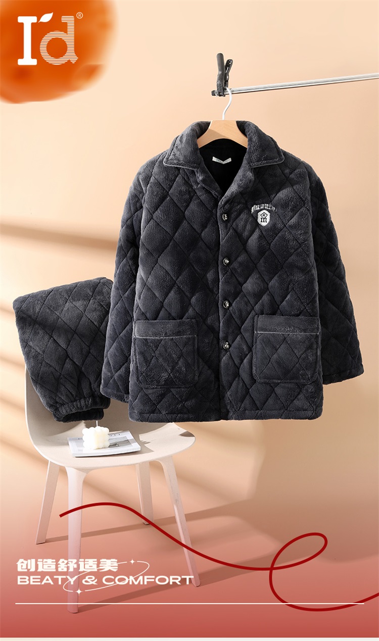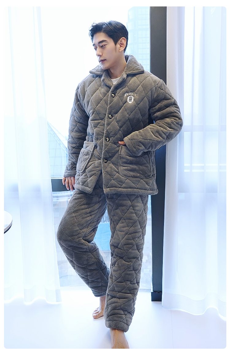 反季特价男士冬款三层夹棉加厚家居服套装