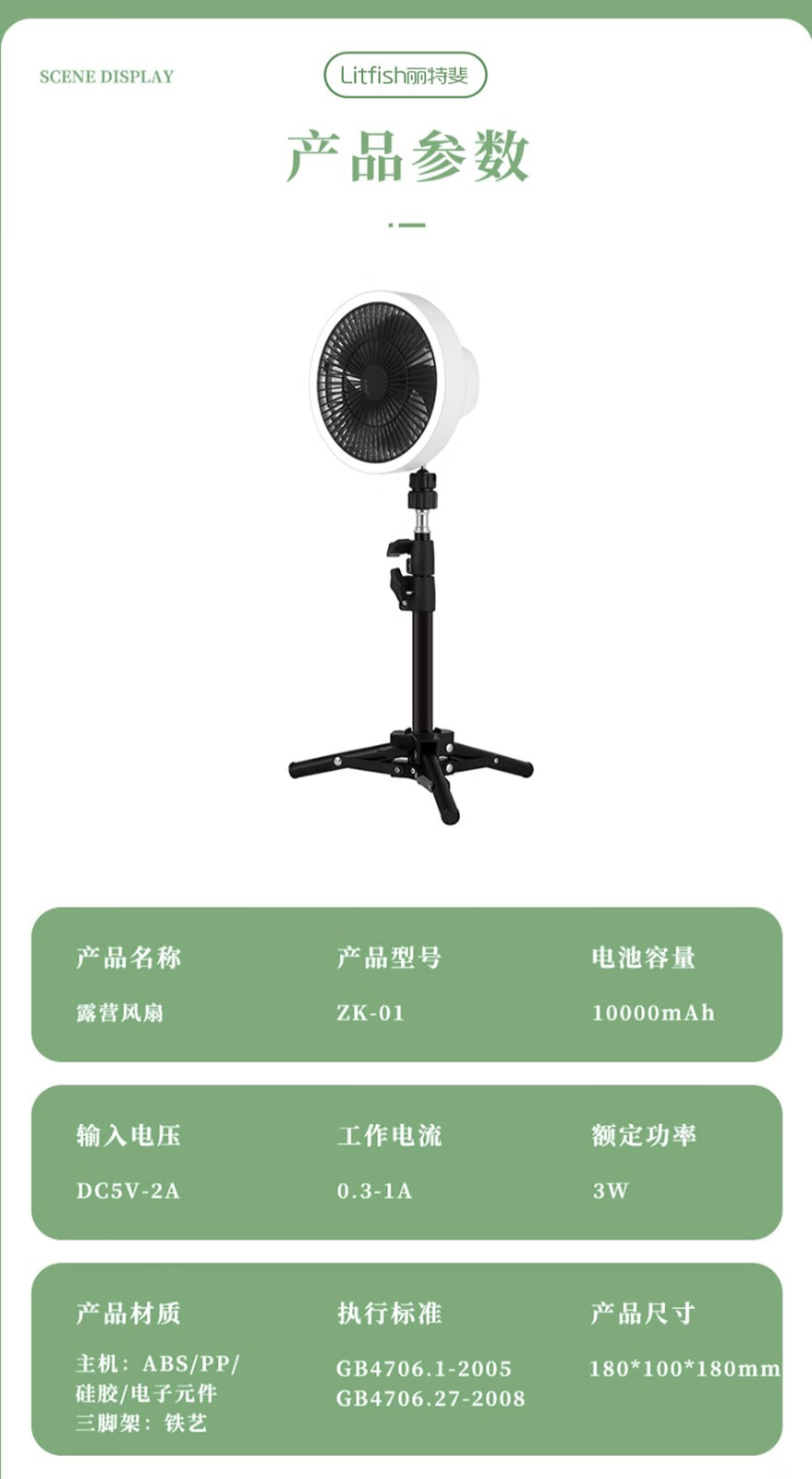 丽特斐户外露营风扇便携式无线电风扇 ZK-01
