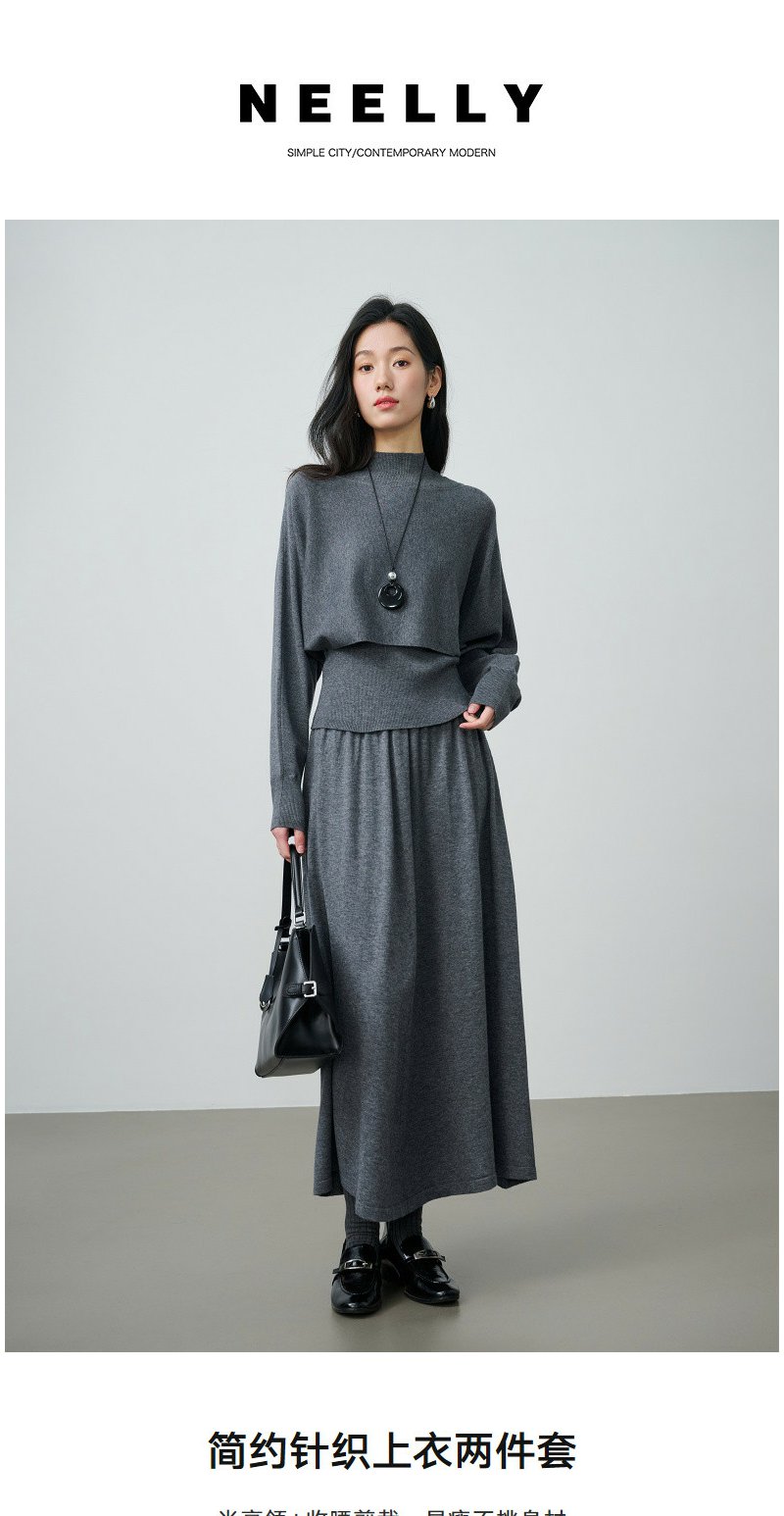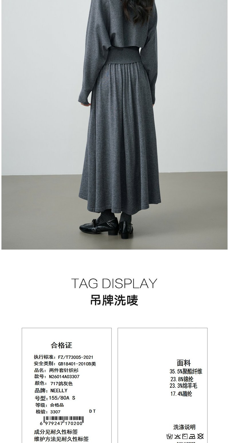 NEELLY纳俪商场同款春新款简约针织上衣两件套女优雅收腰设计上衣N26014A03307