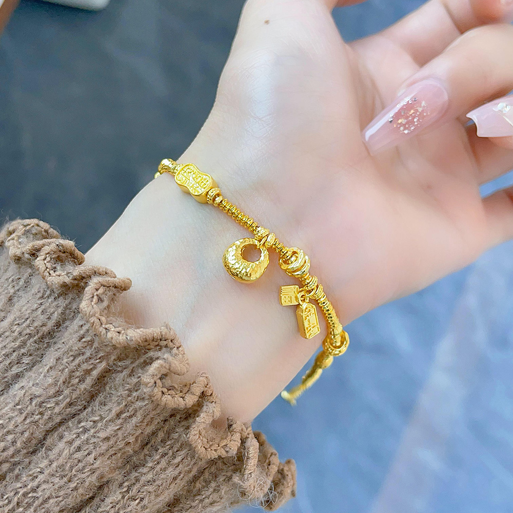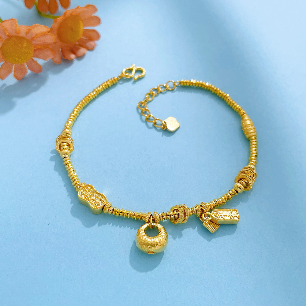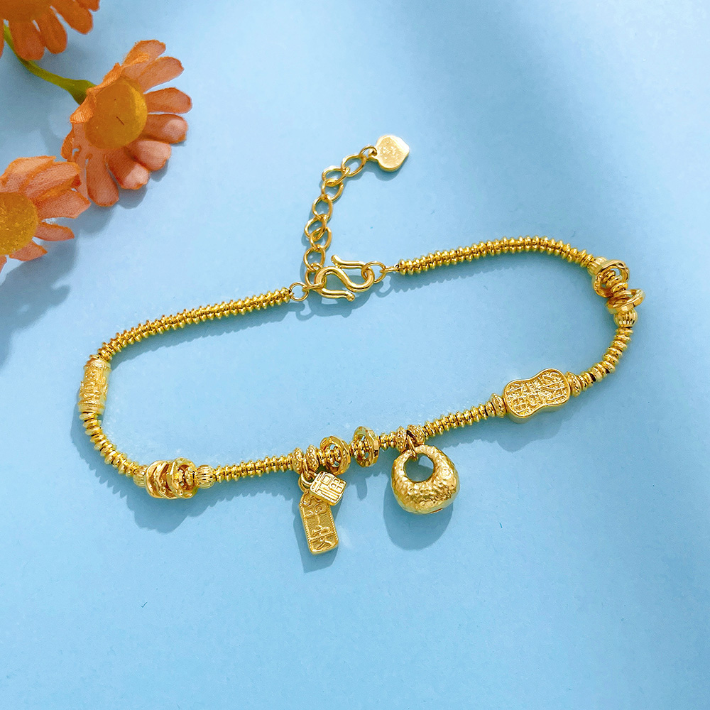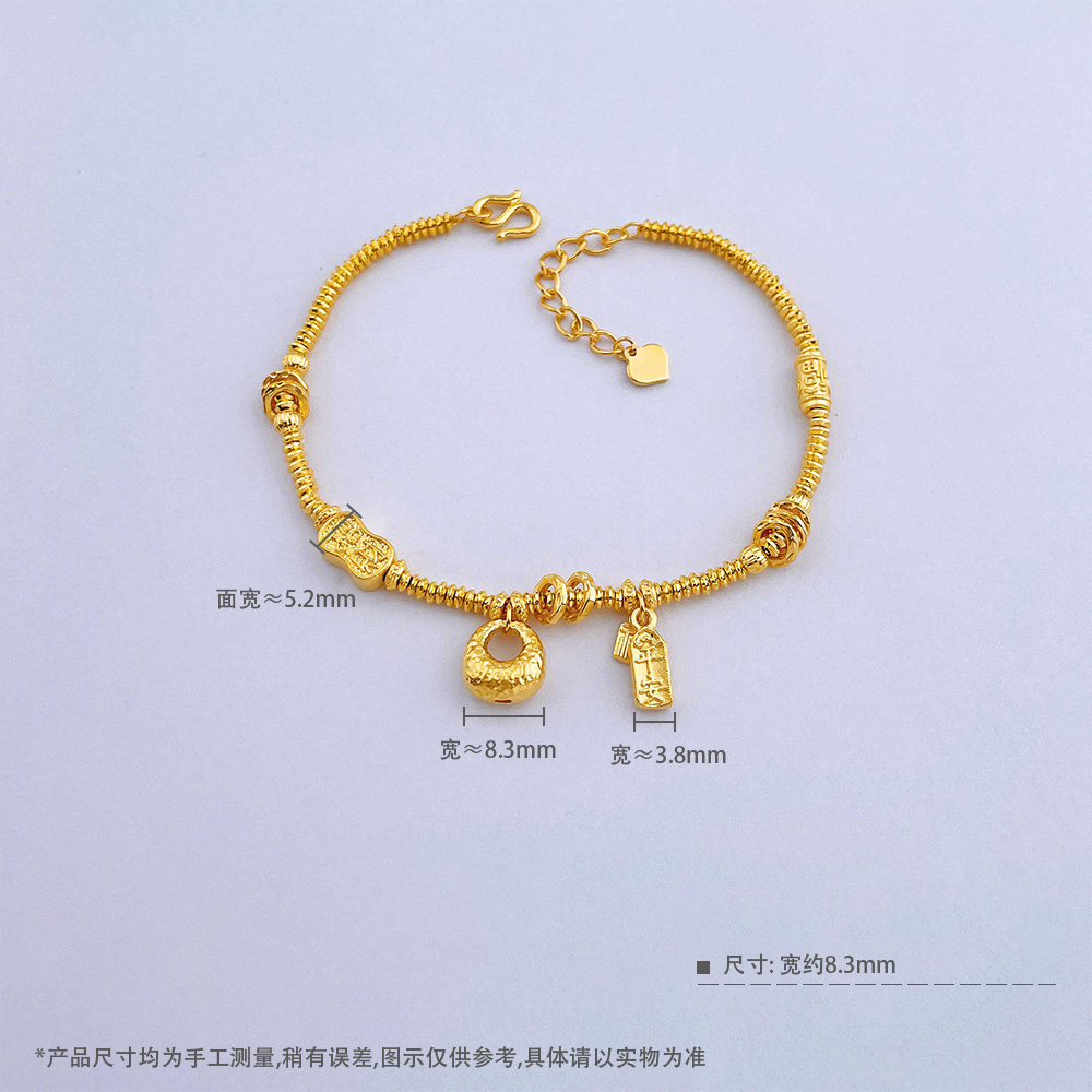 【限时克减150元】足金999.9 #非凡福佑 #小胖福 闪碎金空心小胖福招财吊饰平安金圈调节手链(内里为足金链)(AEWSL00046)(预售产品下单后不退款不退货不换货不补差价)