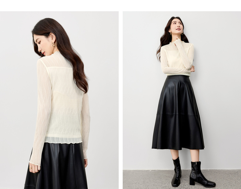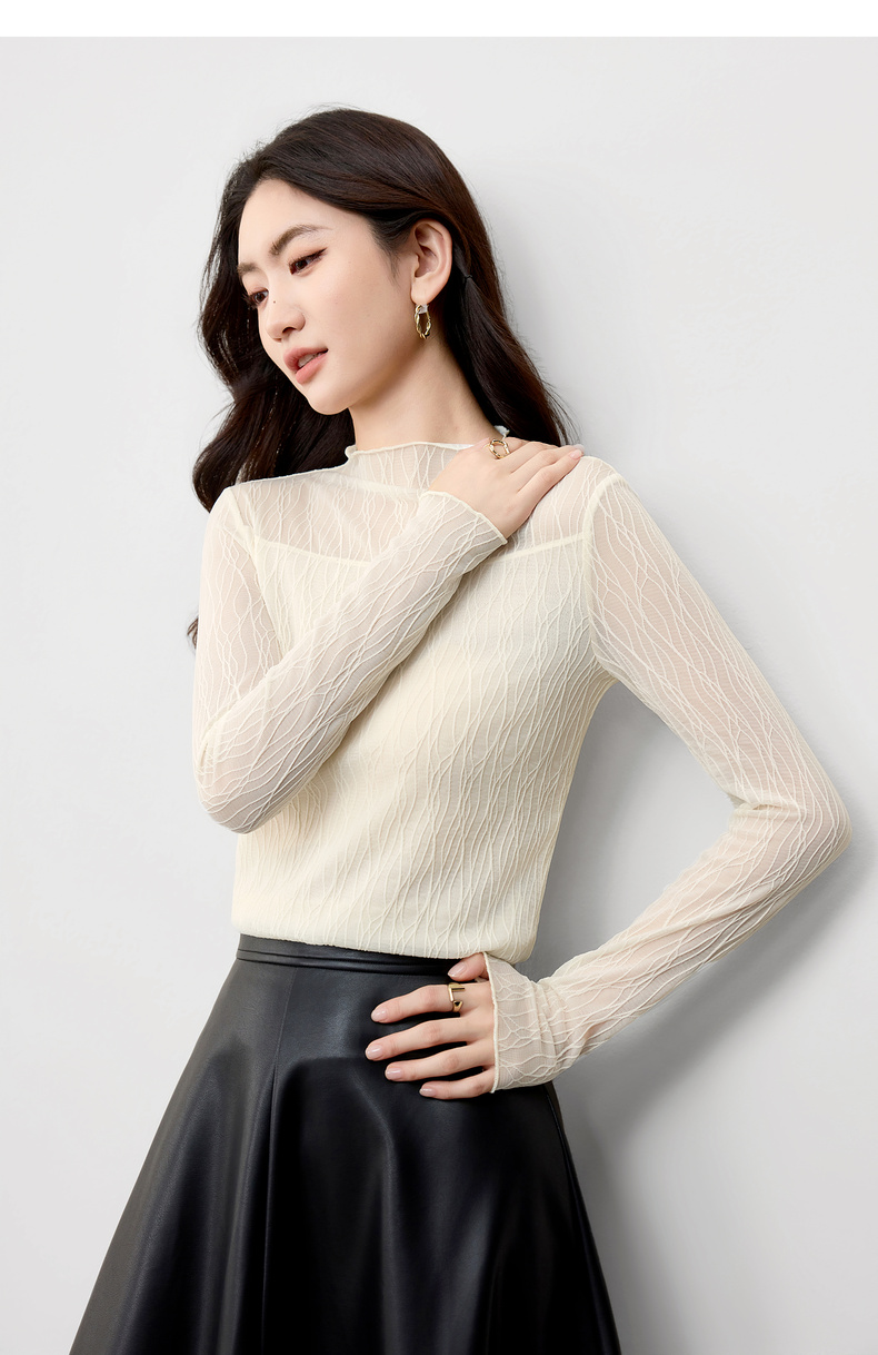 【内购】【易搭配】优雅通勤半高领艺术线条肌理蕾丝弹力修身内搭打底衫-153SF2677