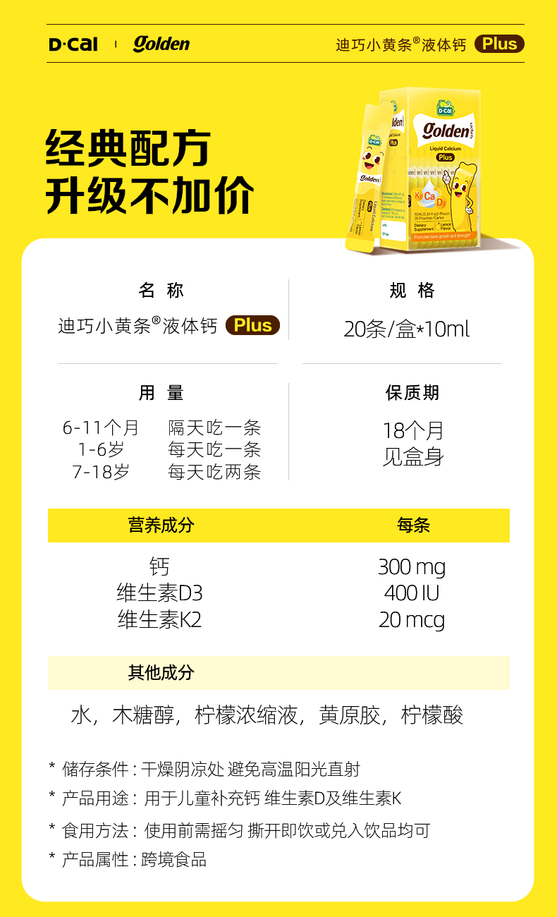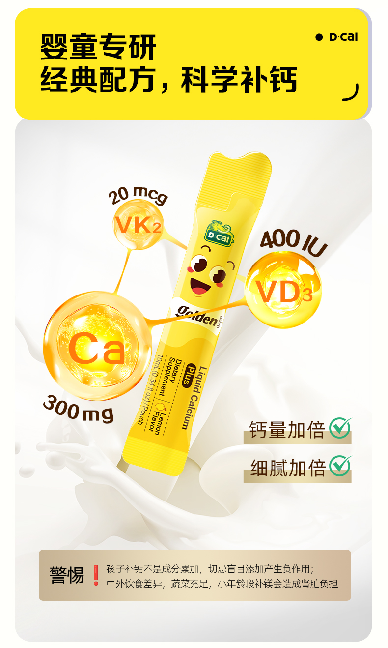迪巧小黄条液体钙plus版婴幼儿童维生素d3+K2柠檬酸钙
