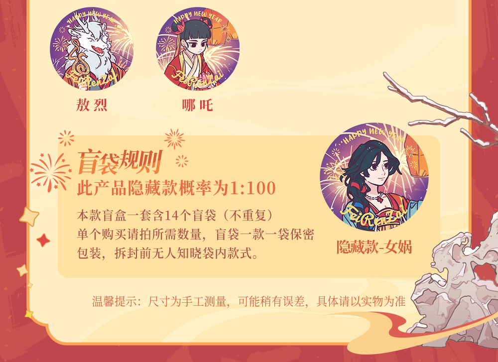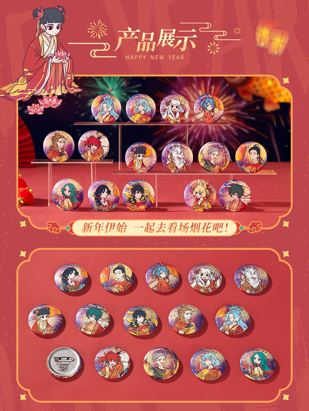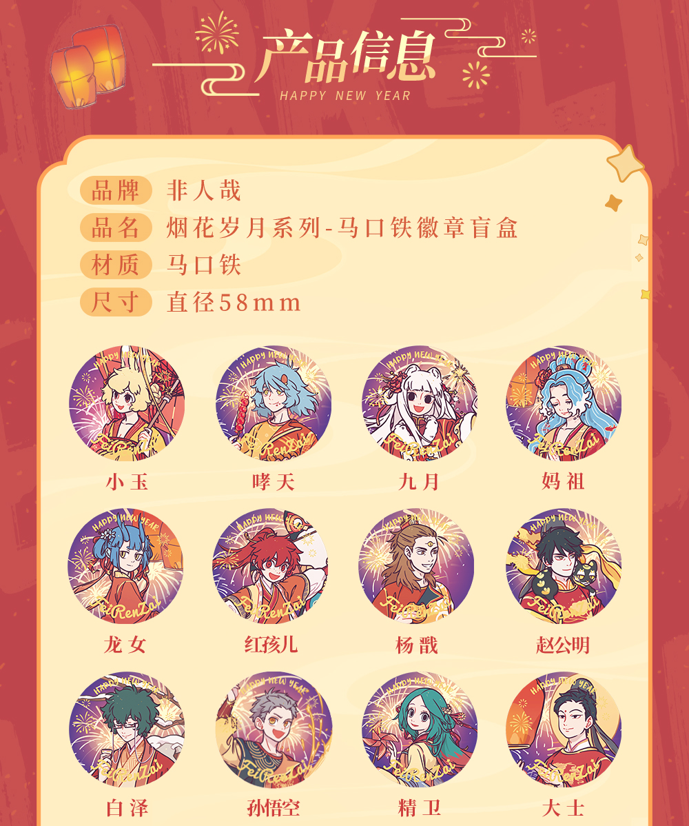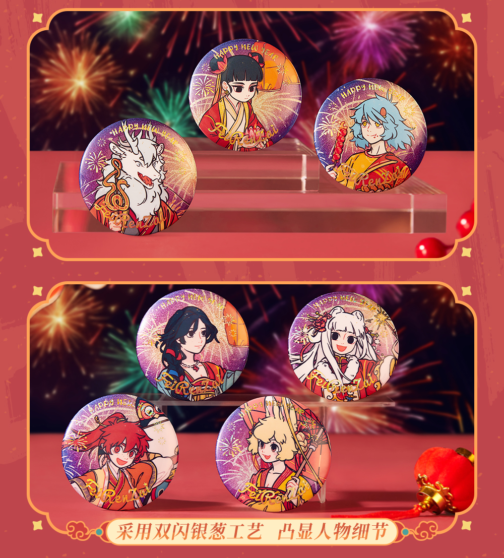 《非人哉官方店》烟花岁月系列马口铁徽章浮雕镭射金58mm吧唧盲盒