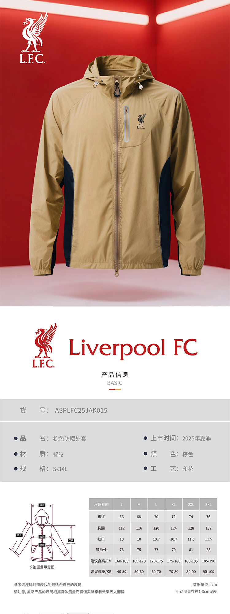 【官方正版】利物浦俱乐部 | 棕色防晒衣夏季户外连帽外套