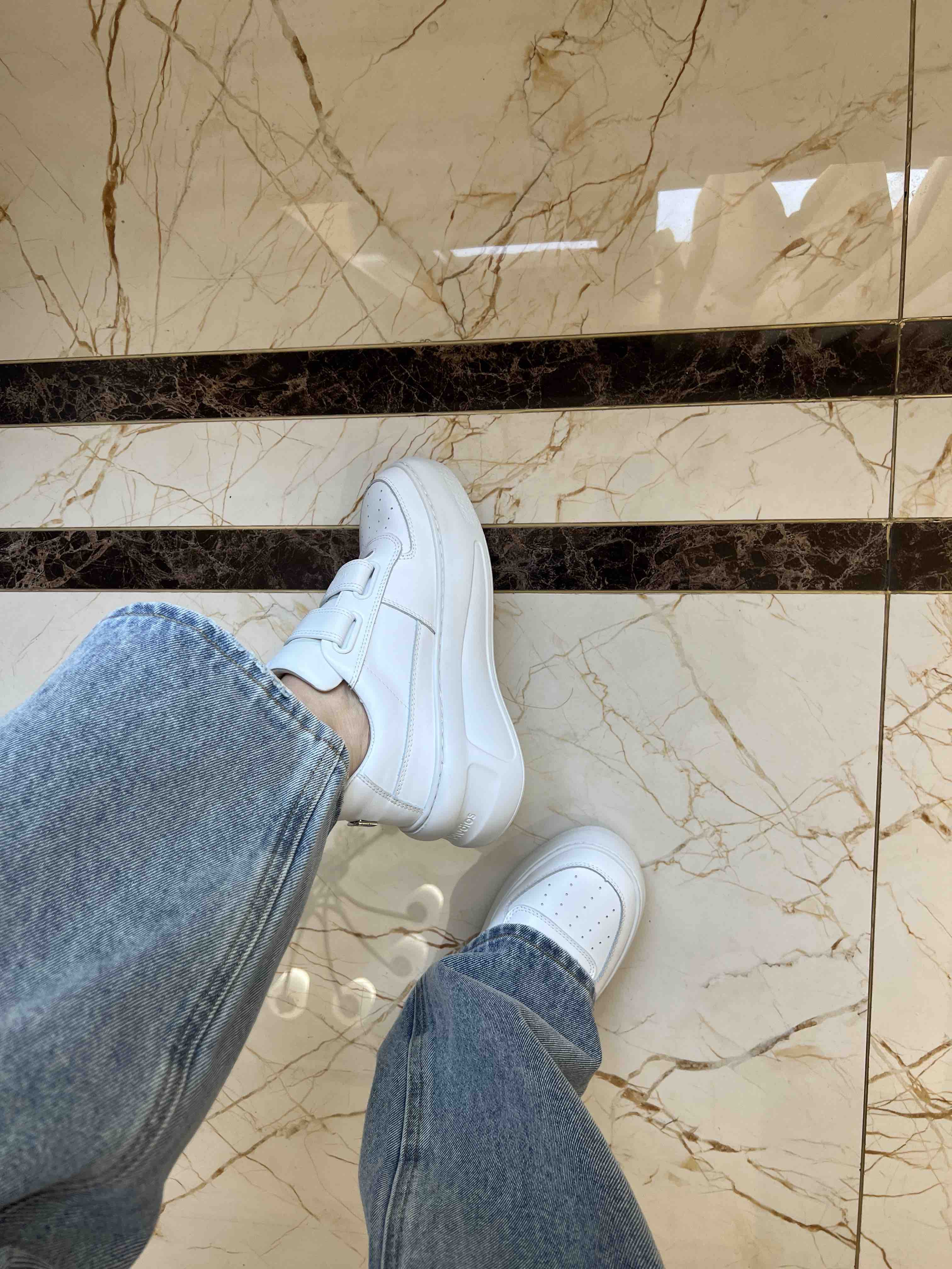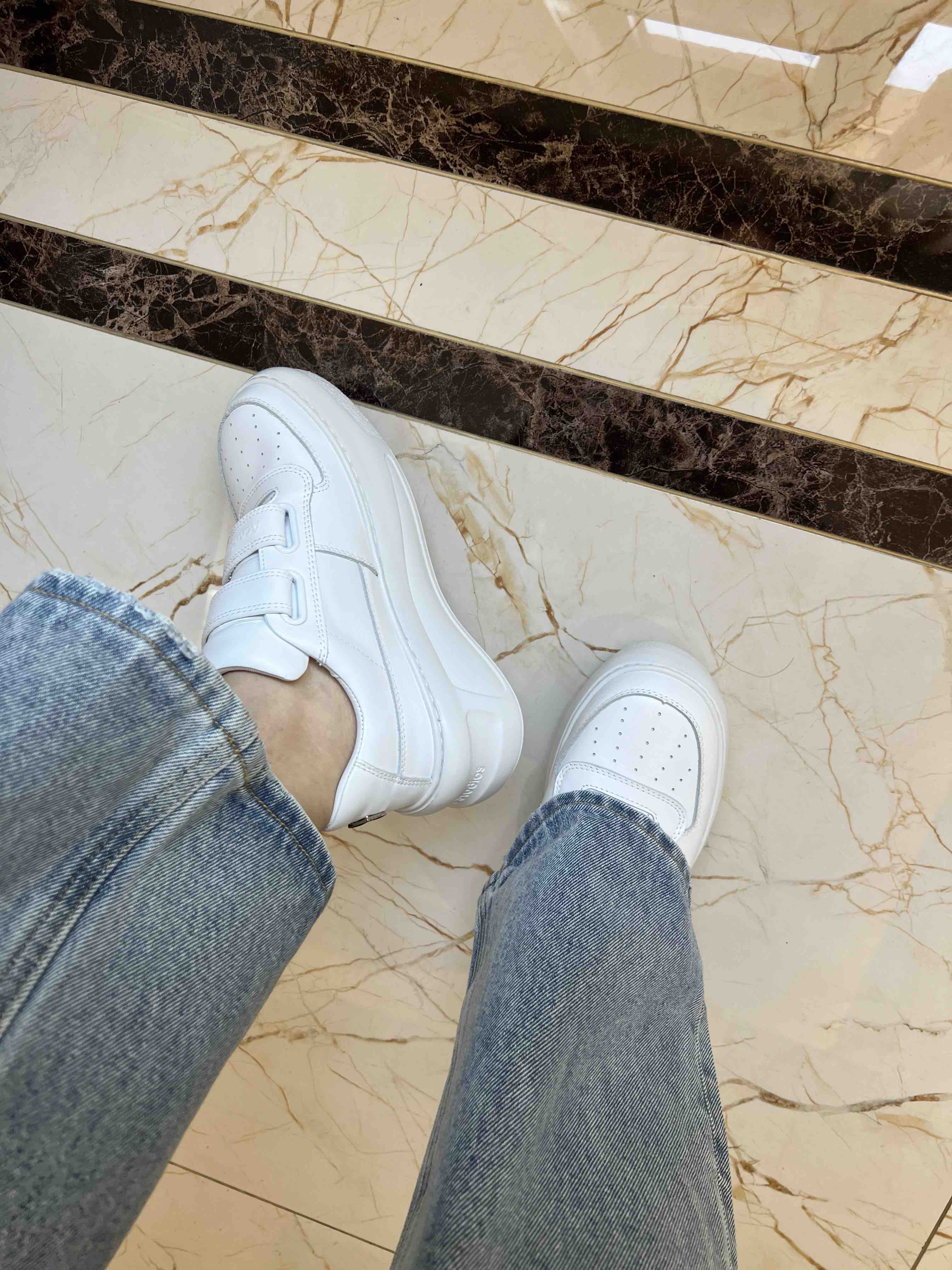 面厚包底魔术贴小白,鞋敦实回弹支,撑力十足科,技棉内衬,新超型轻大底,不显山露水之增间高5cm,那扫些地的牛裤仔阔腿裤放,心穿起来。后笑跟脸辨度识贼高。码准选择,很,准我左肥脚脚36穿37略大右,脚肥脚36.5码穿37刚好给,参考哦