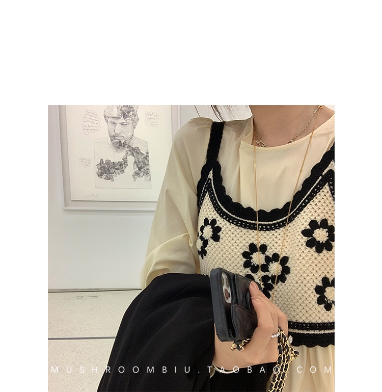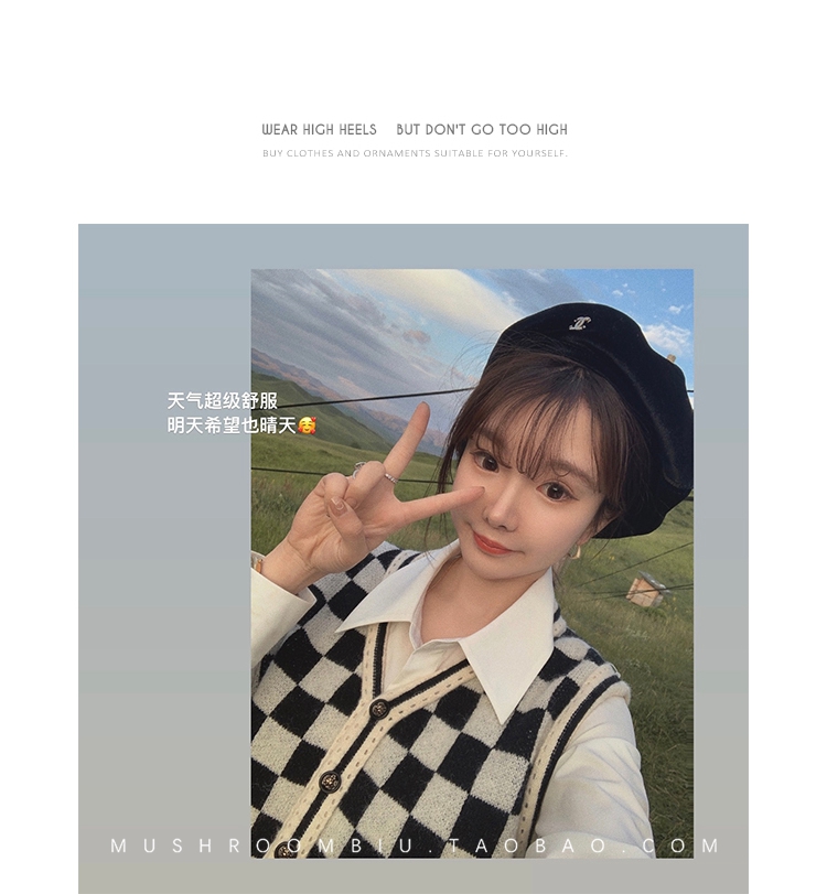 金蘑菇菇【纽约艺术馆】设计感复古棋盘格针织背心马甲女