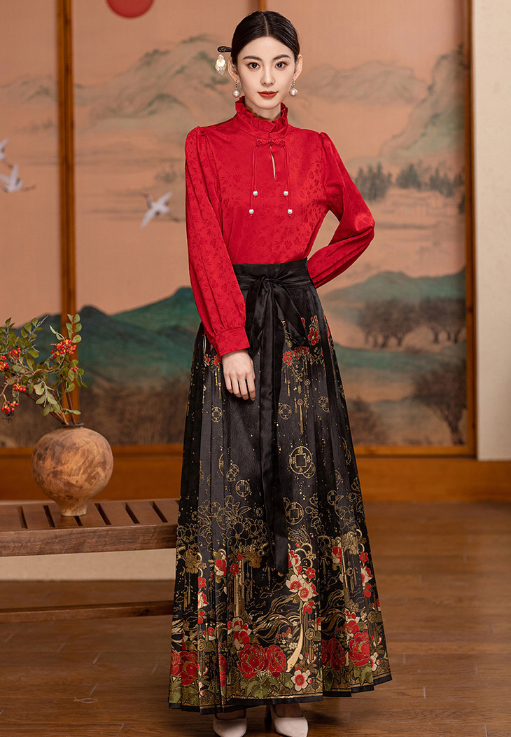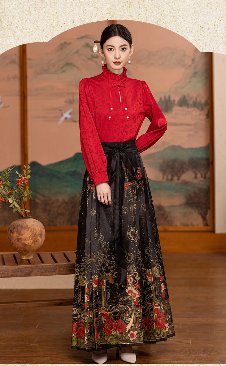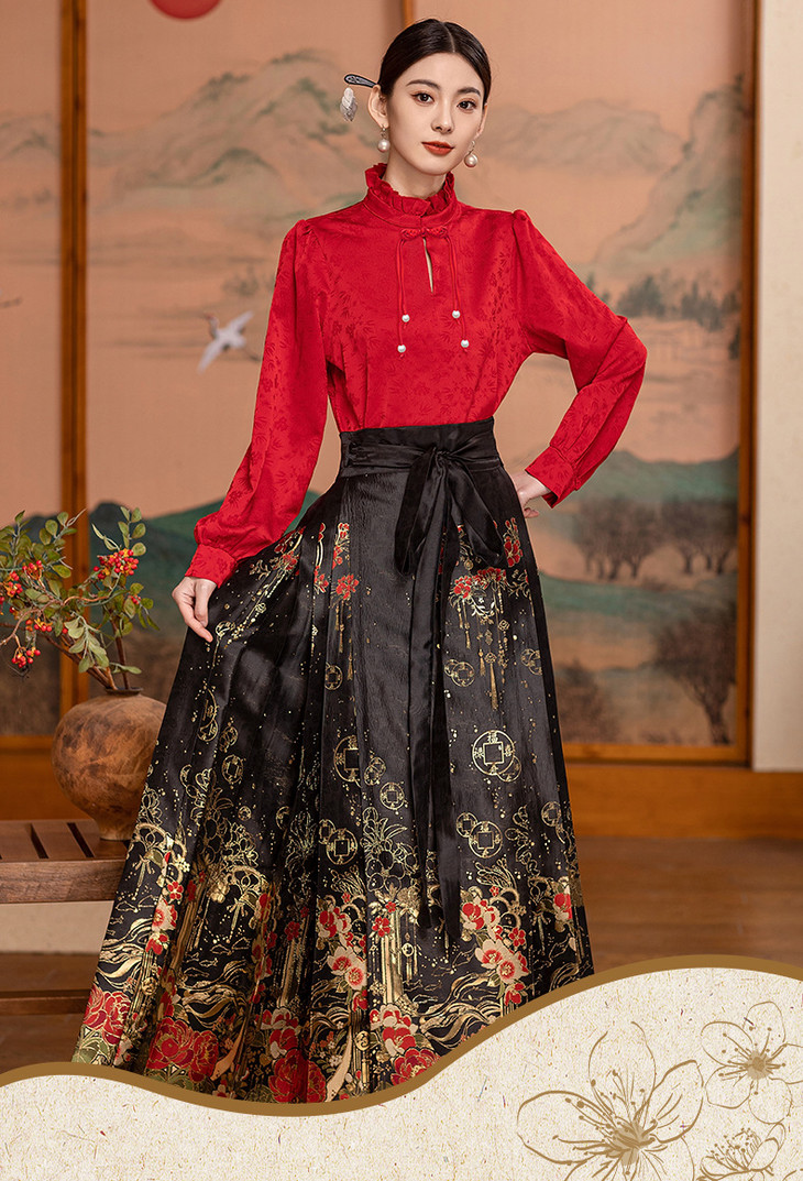2024春季上新气质时尚复古新中式风小众设计两件套马面裙套装裙HR-WZ242069