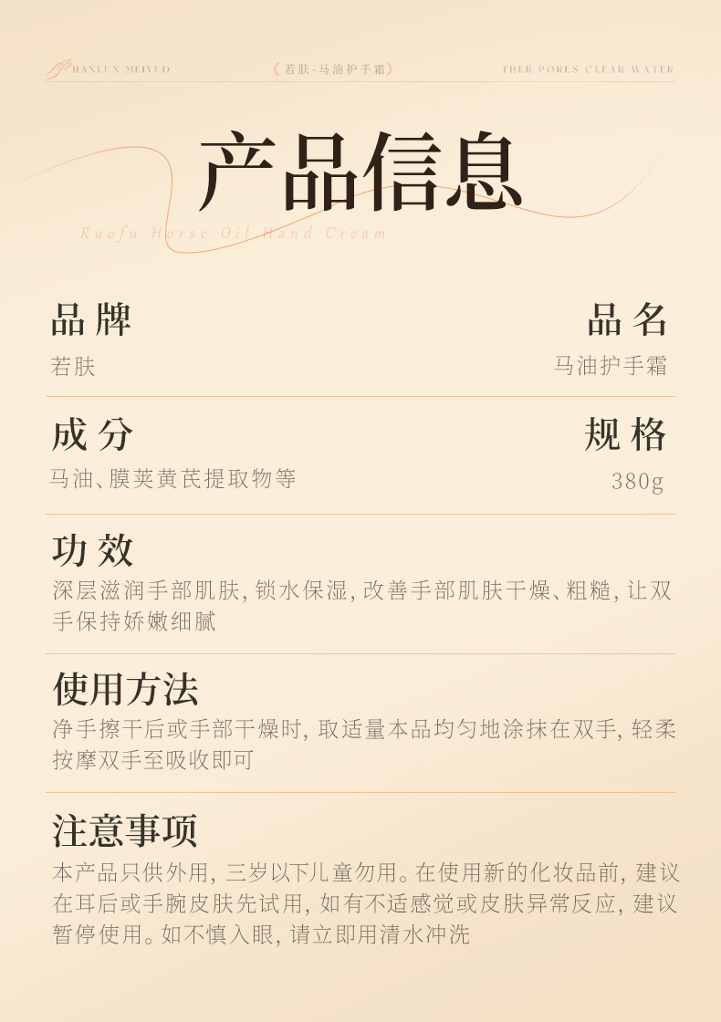 【老牌国货若肤马油护手霜】补水保湿滋润留香 秋冬季护肤滋养手脚