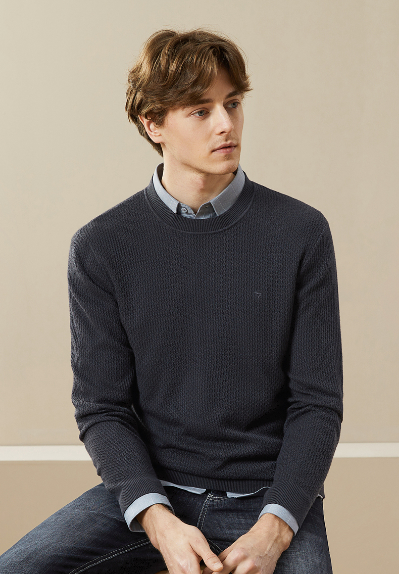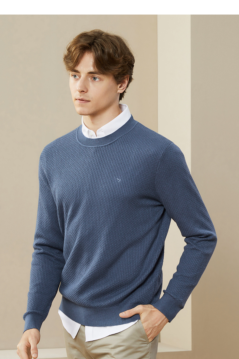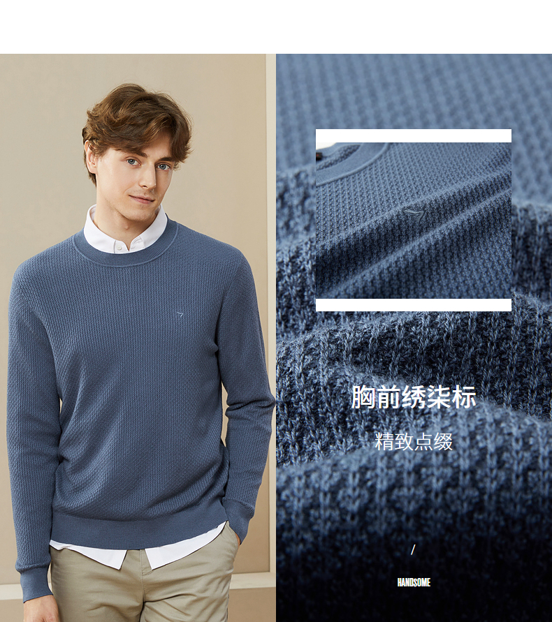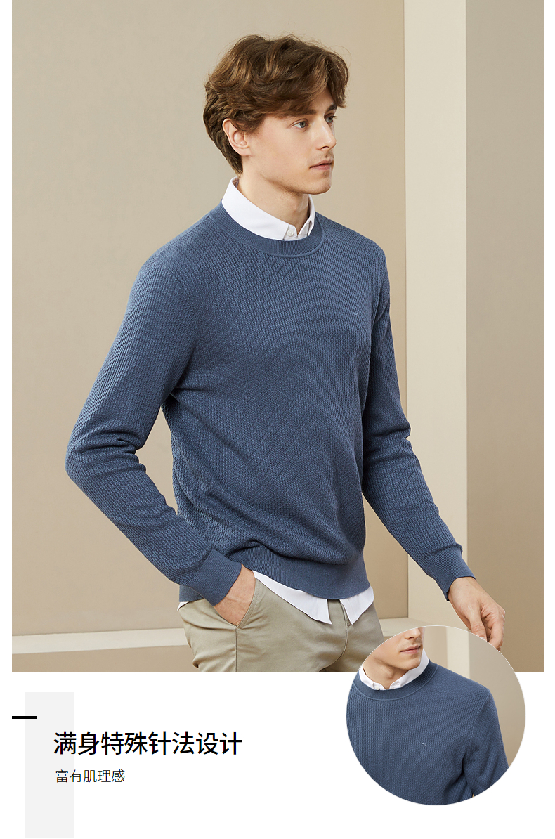 柒牌男士毛衣秋冬新款中青年圆领纯色时尚休闲含羊毛打底毛衫 125Y70020