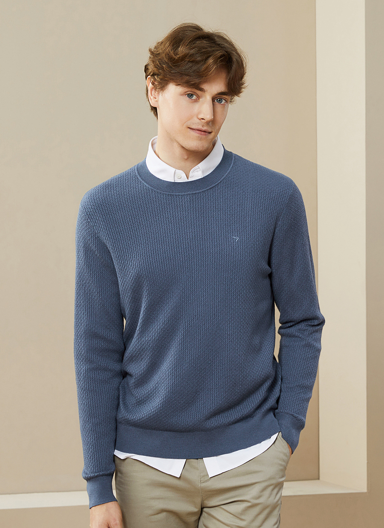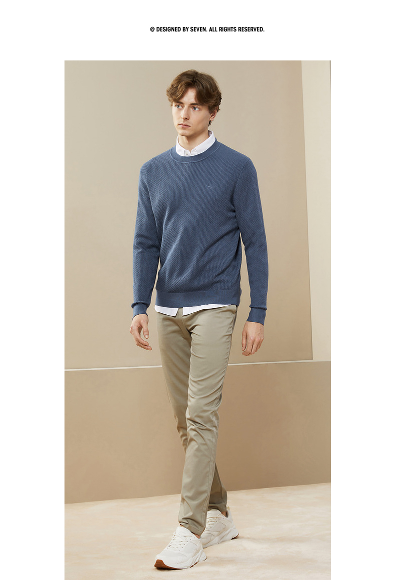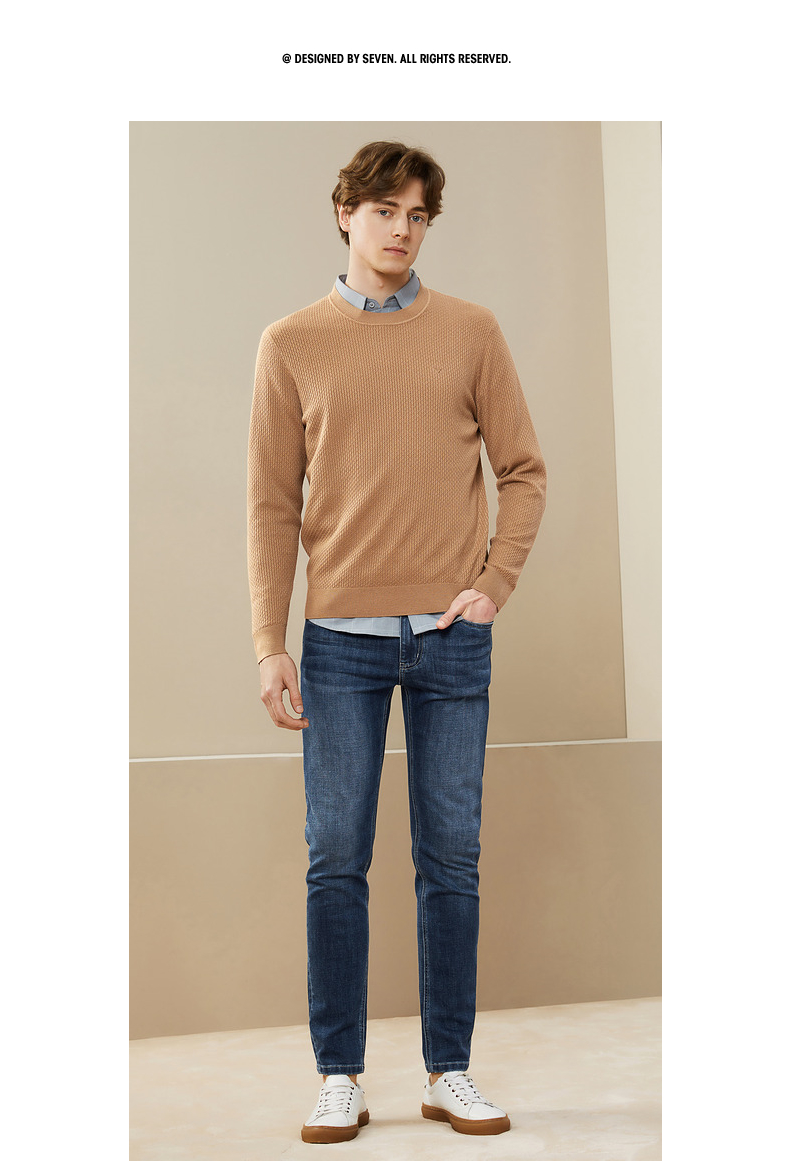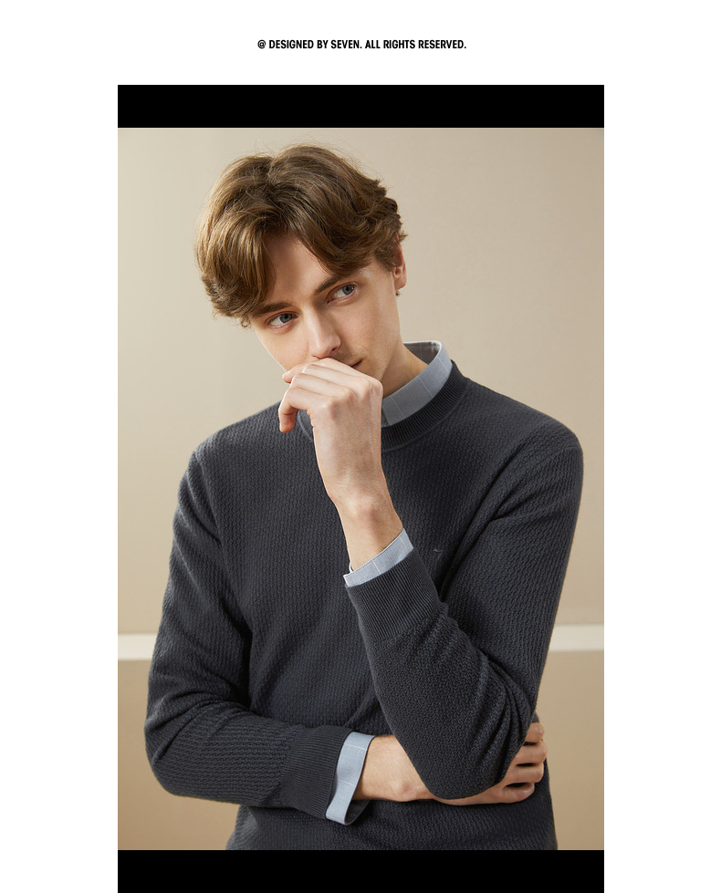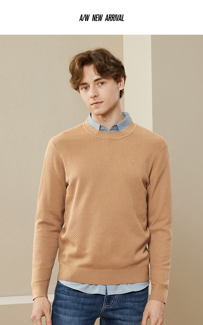 柒牌男士毛衣秋冬新款中青年圆领纯色时尚休闲含羊毛打底毛衫 125Y70020