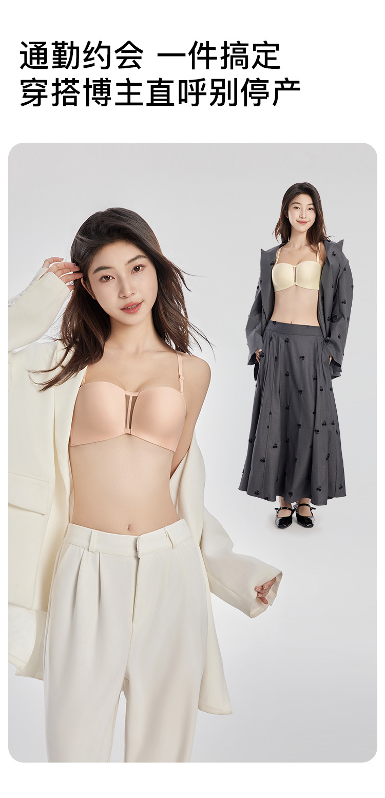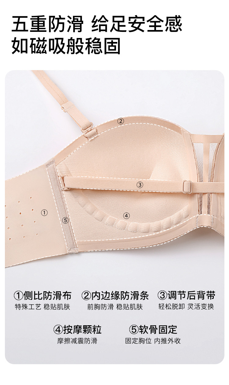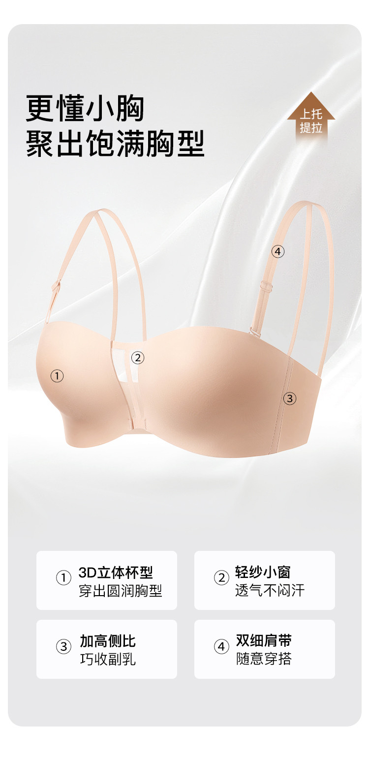 流光玉霞 文胸(VIP) 【粉底液 隐形抹胸】防滑无痕半杯上托小胸聚拢内衣