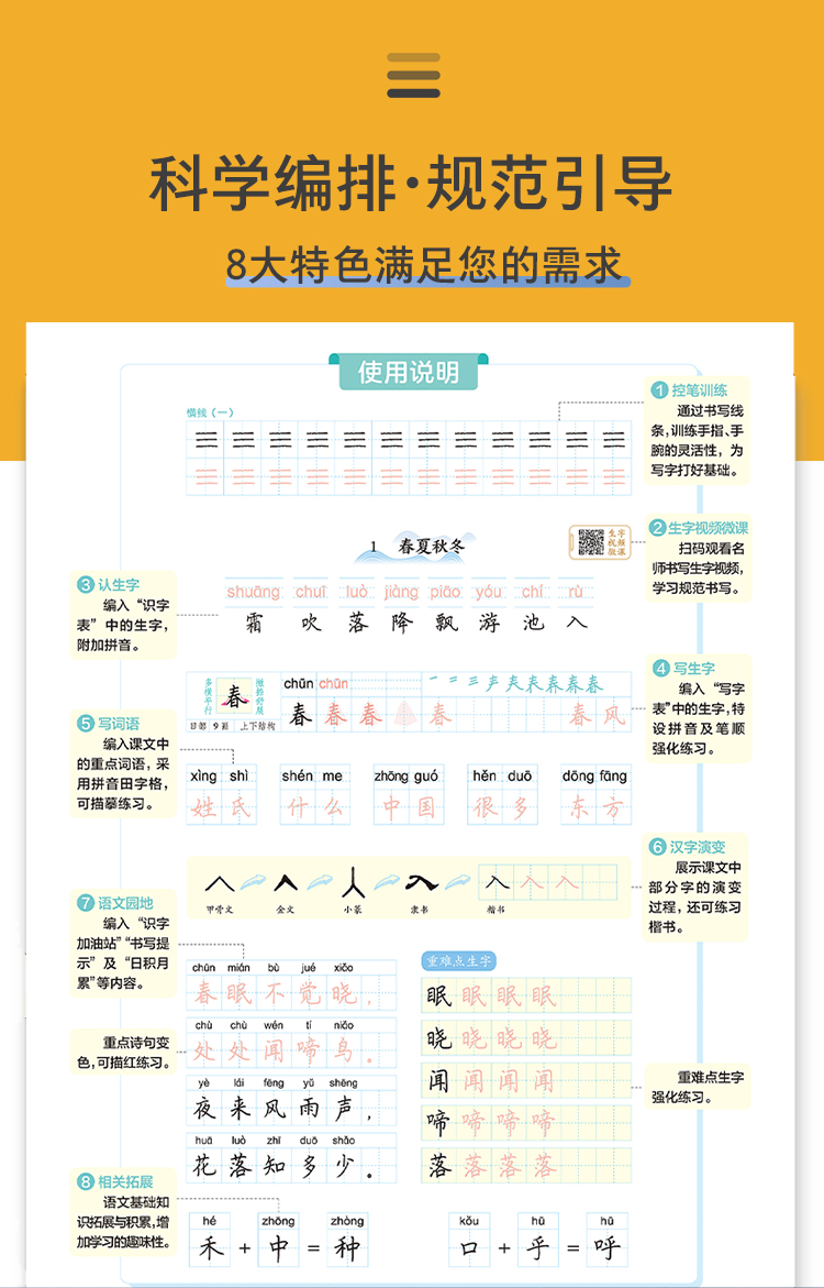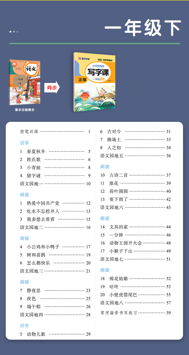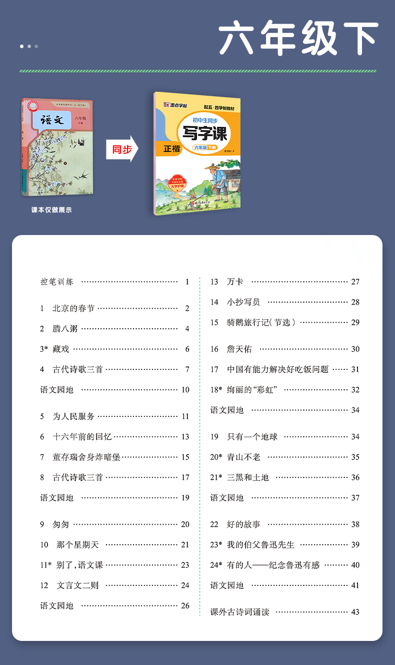 墨点字帖下学期语文春写字同步练习册五四制1-8年级