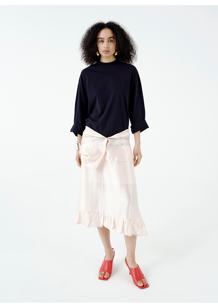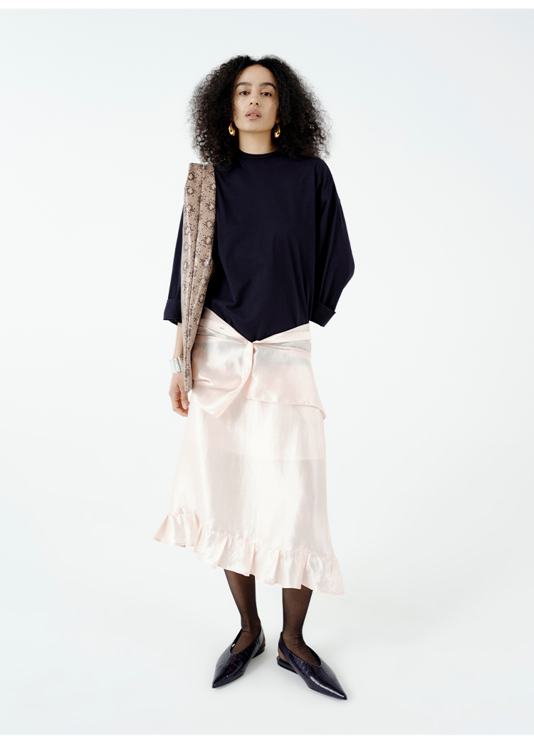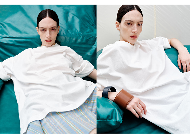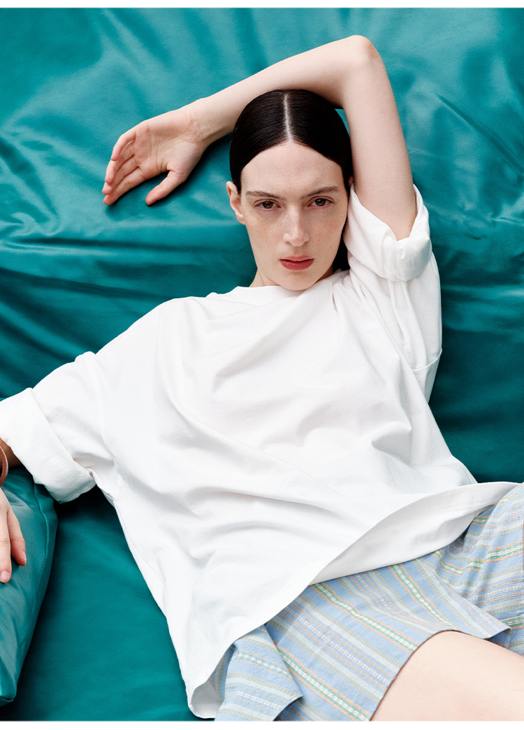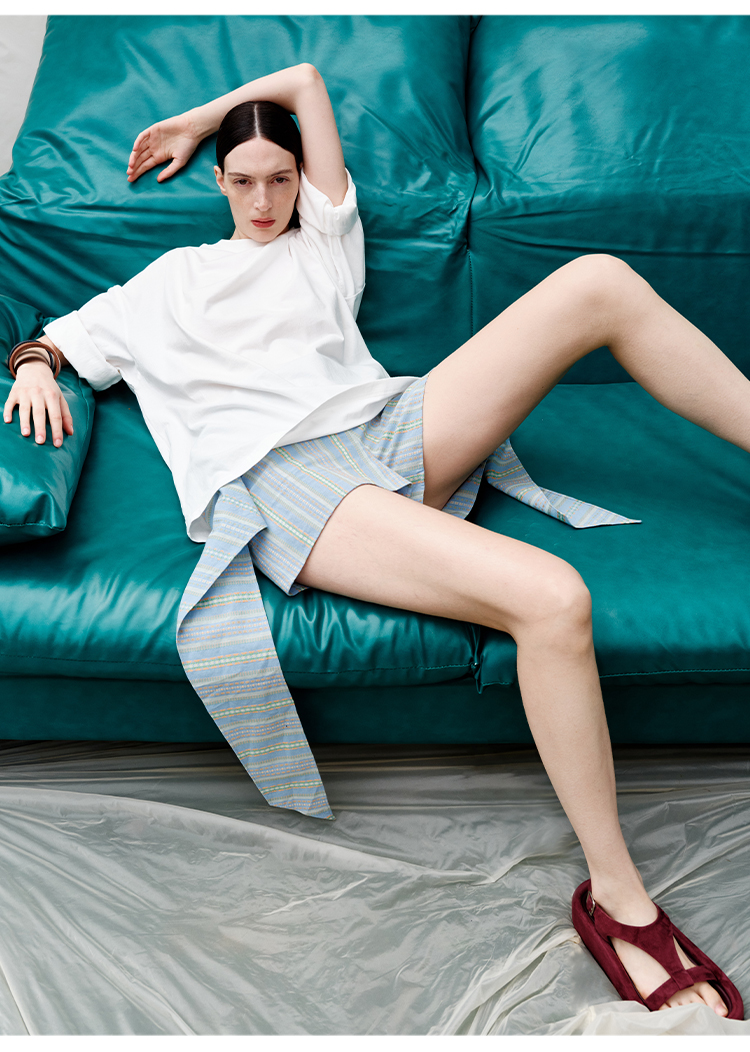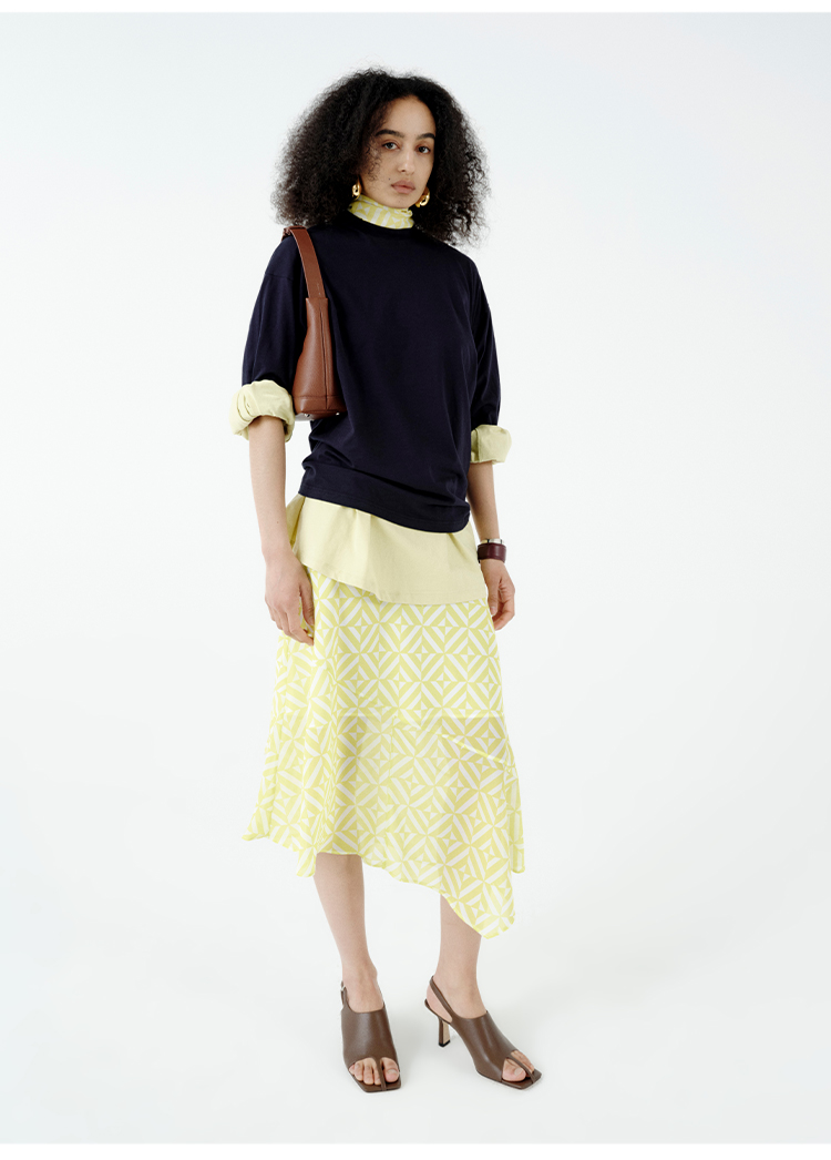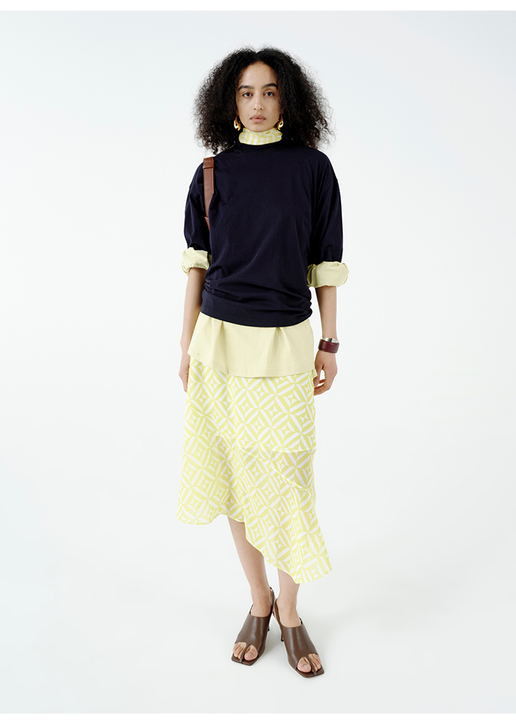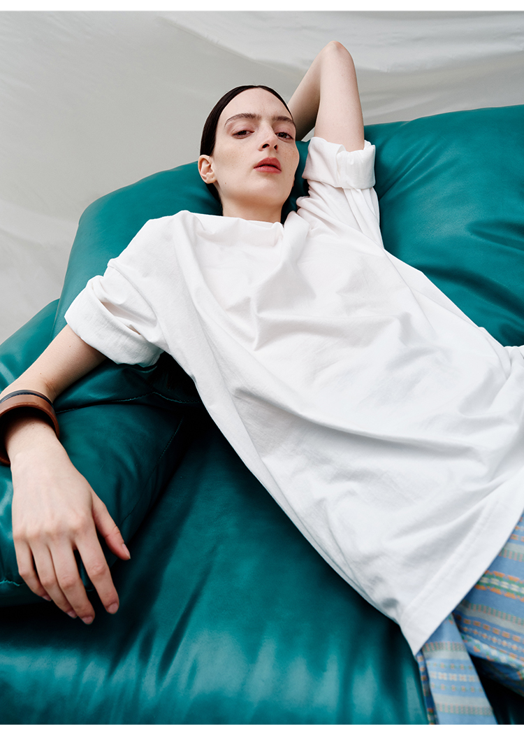 HIDEMI “我们做印花”特殊纸感几何桌椅剪影式印花廓形衬衫