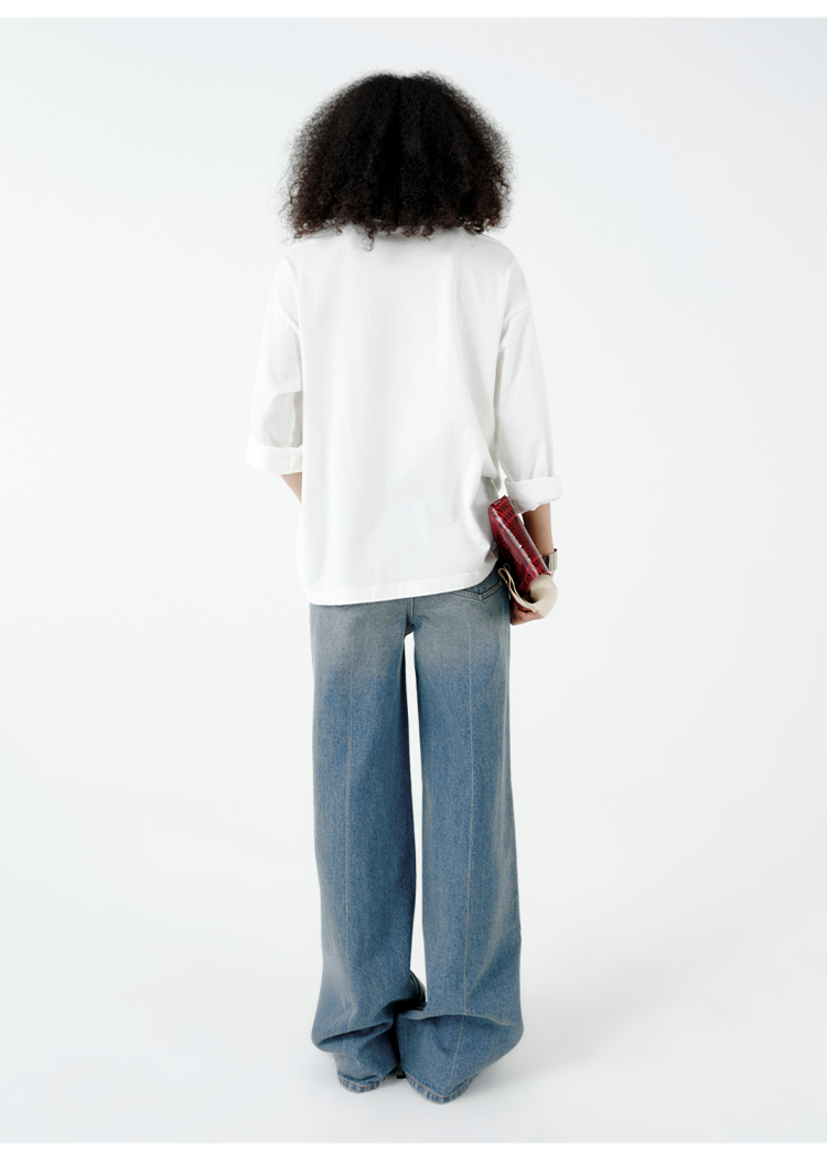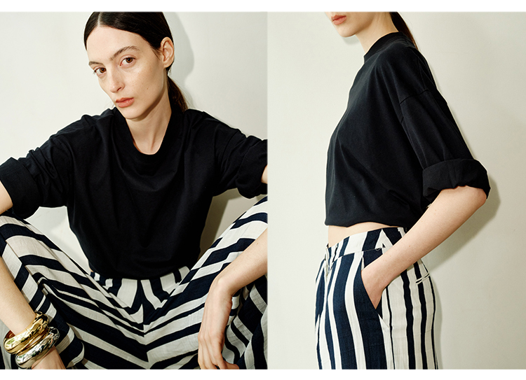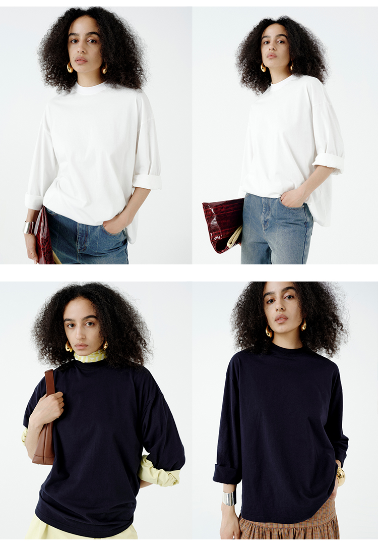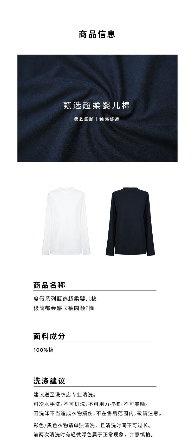 HIDEMI 度假系列甄选超柔婴儿棉极简都会感长袖圆领T恤 白色/海军蓝
