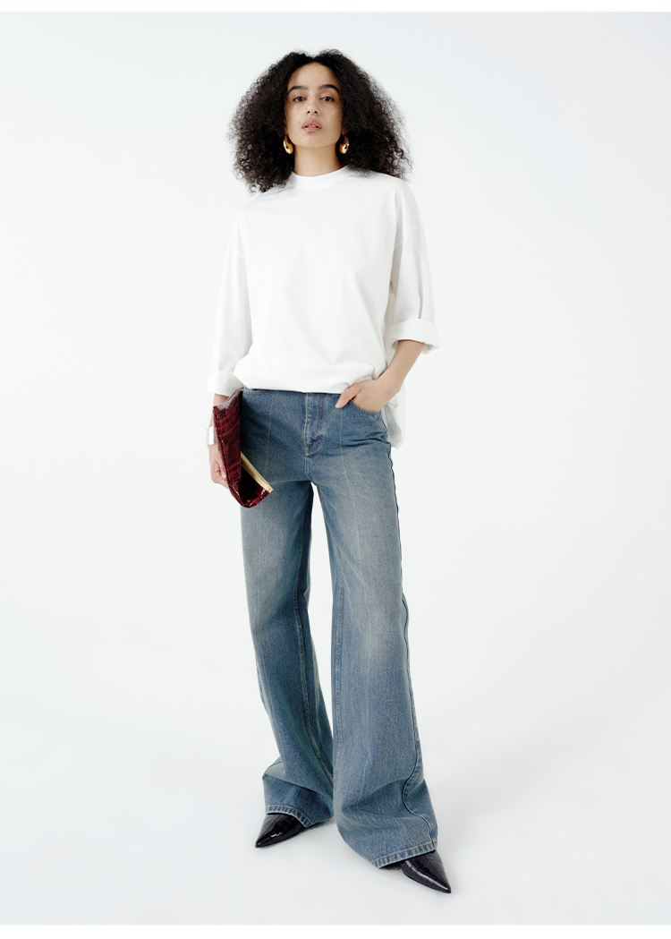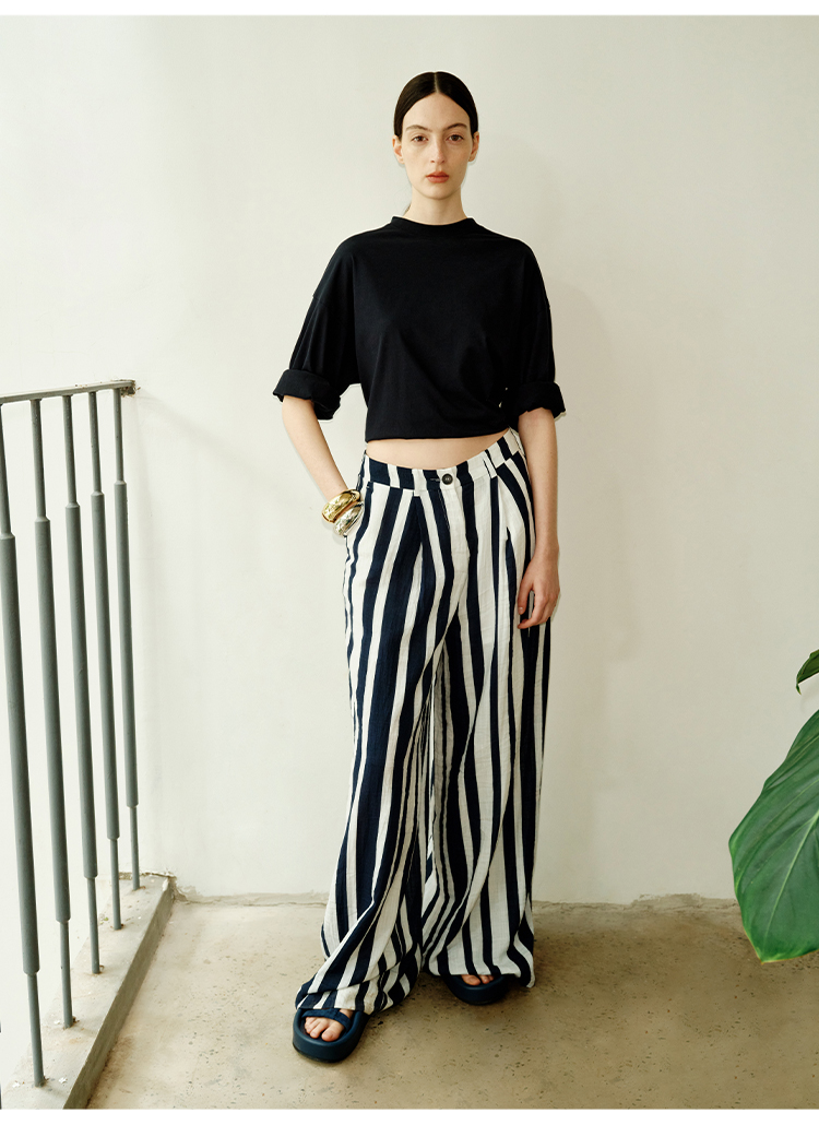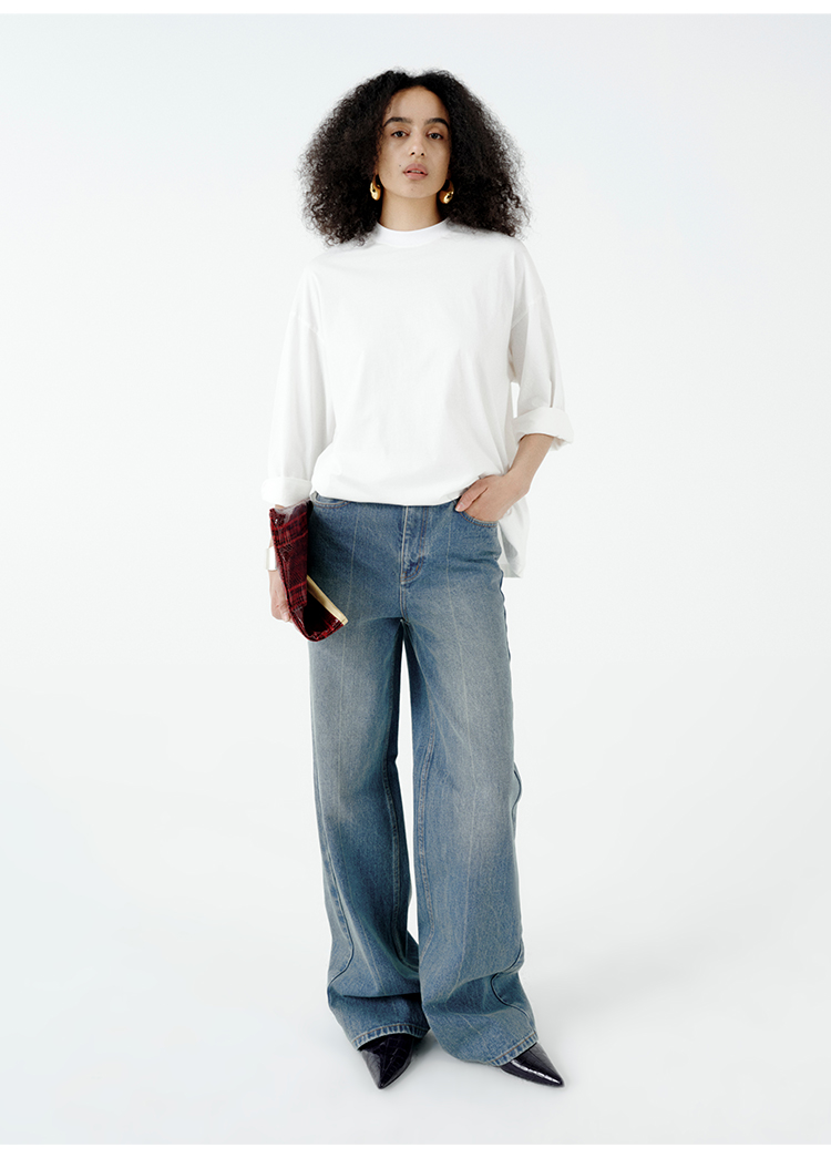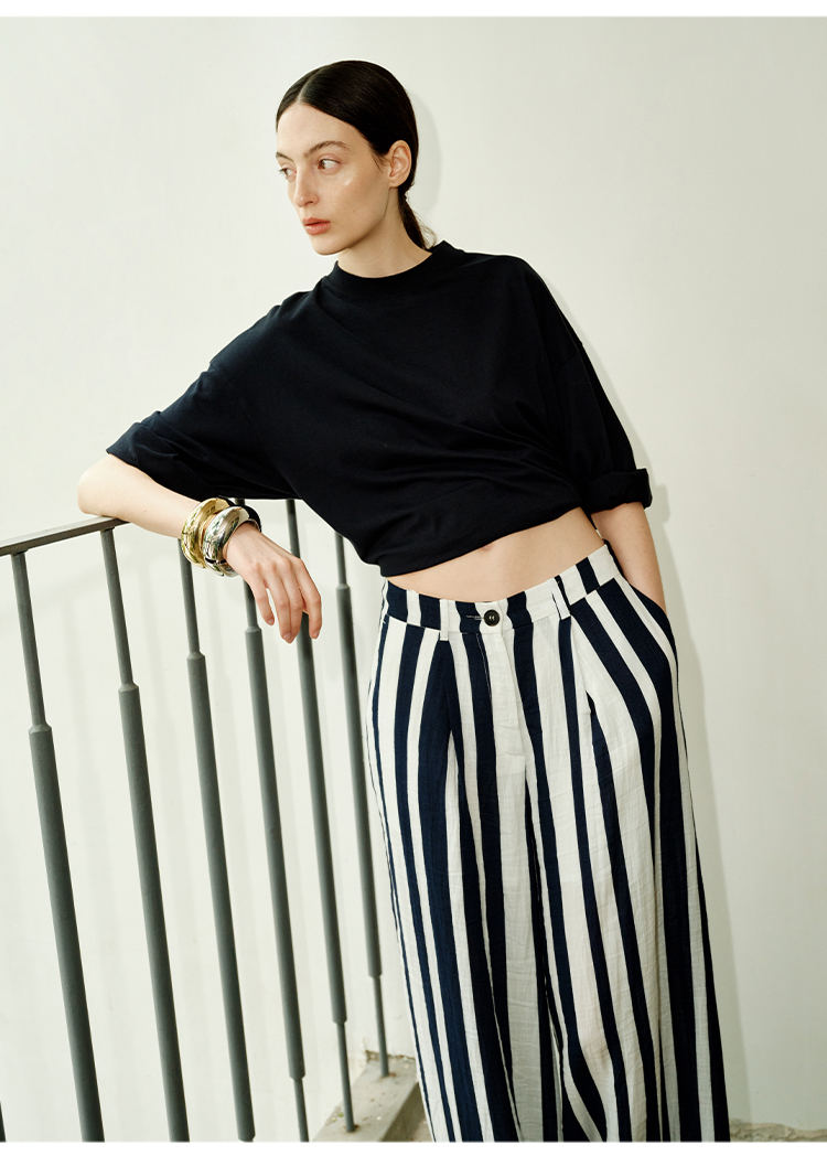 HIDEMI 度假系列甄选超柔婴儿棉极简都会感长袖圆领T恤 白色/海军蓝