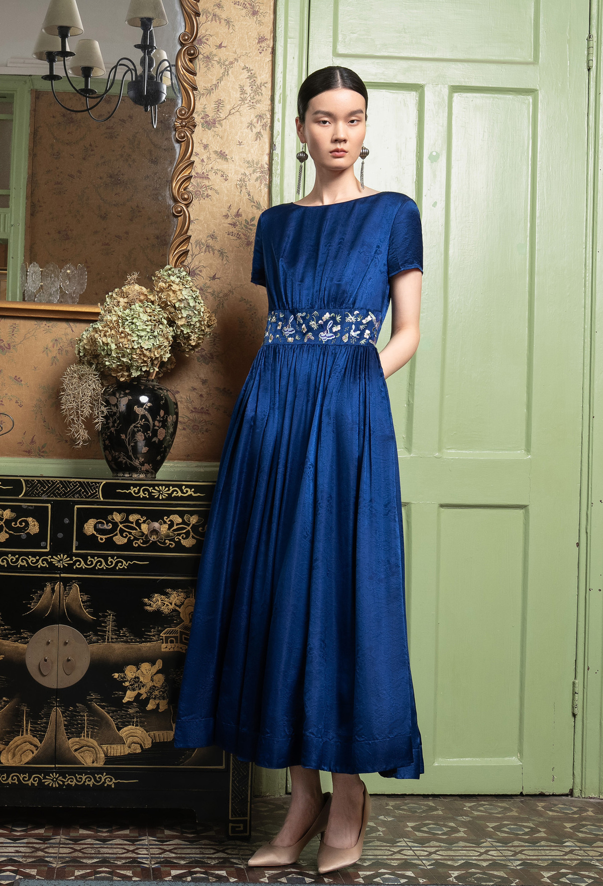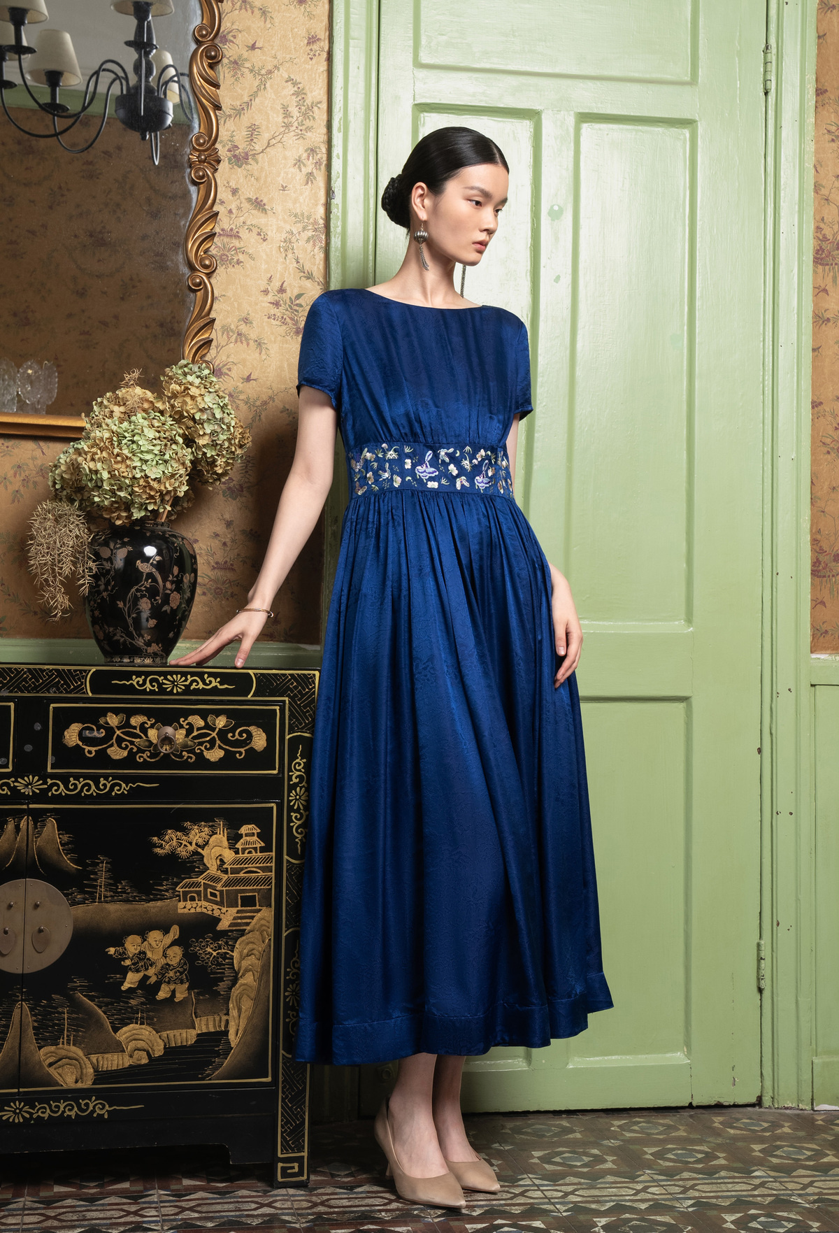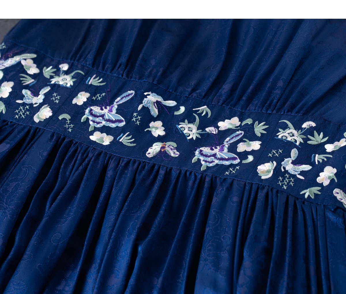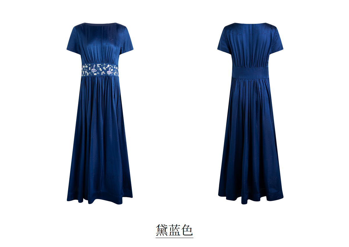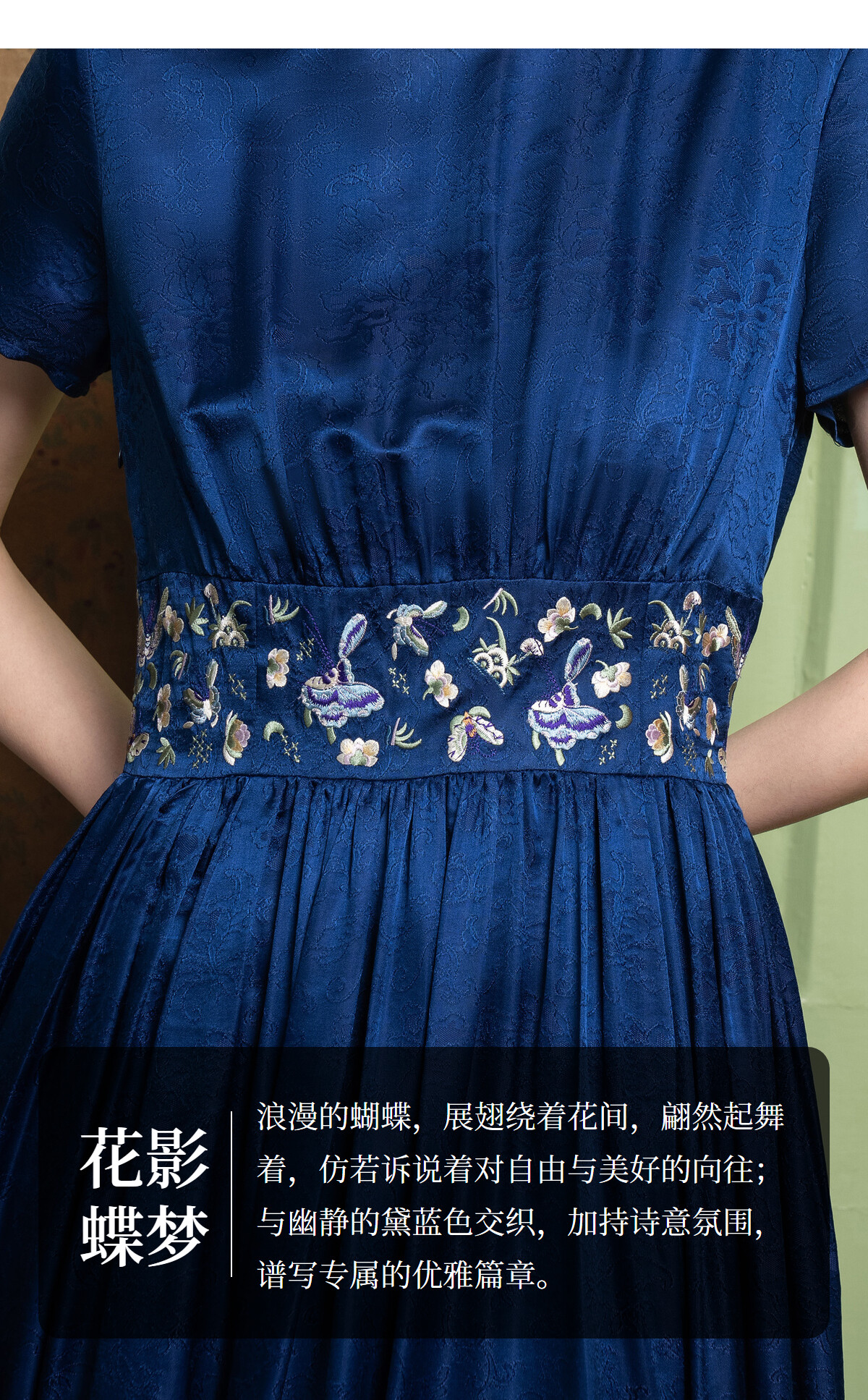 【林栖设计小店】【现货】复古绣花连衣裙修身显瘦优雅气质2024春夏新品短袖长裙女1942349