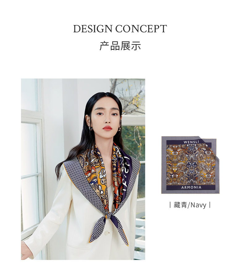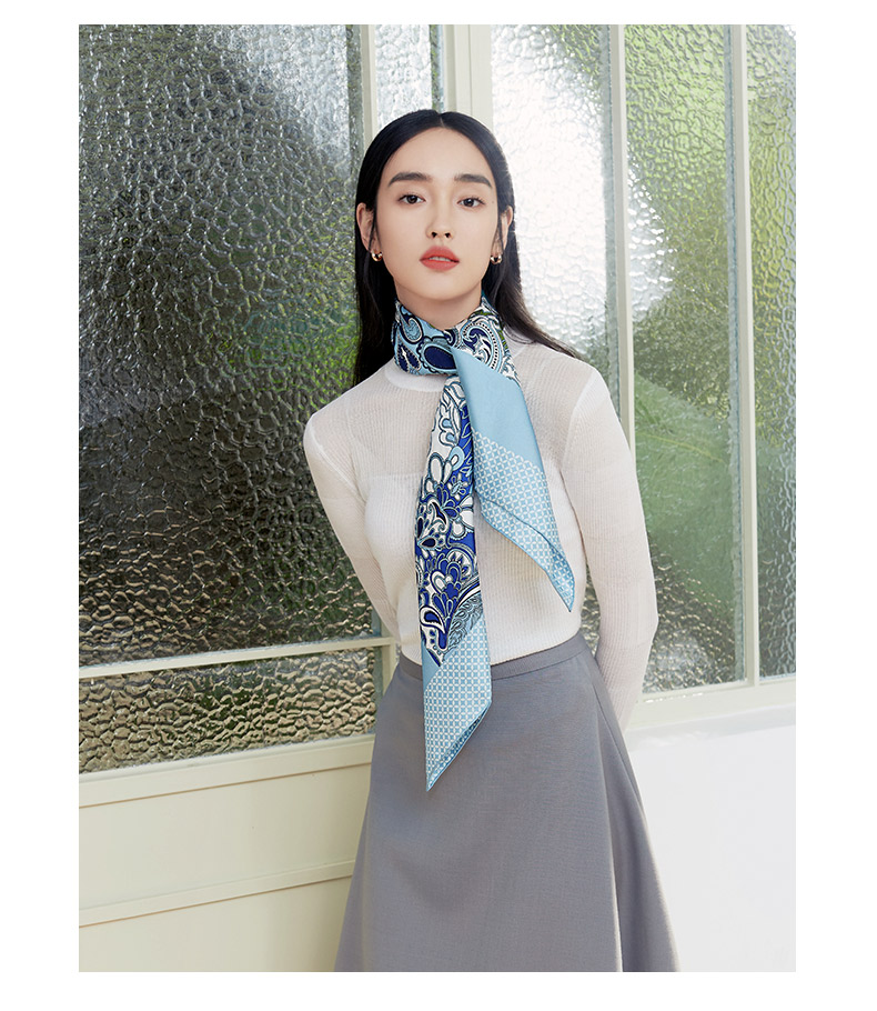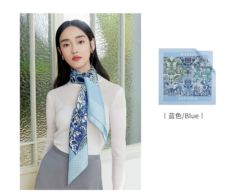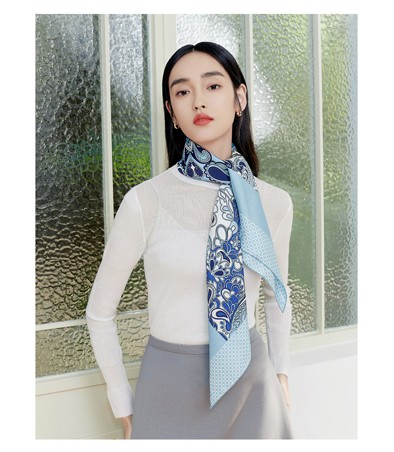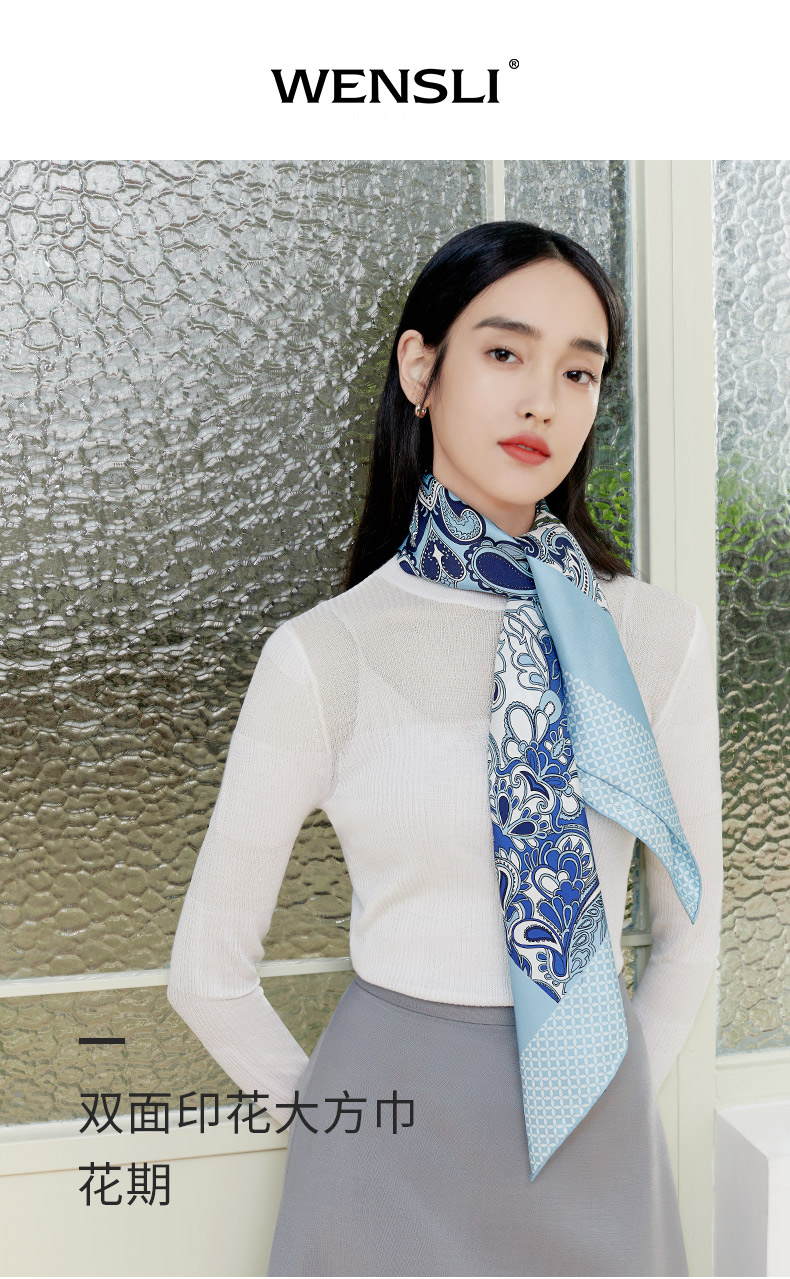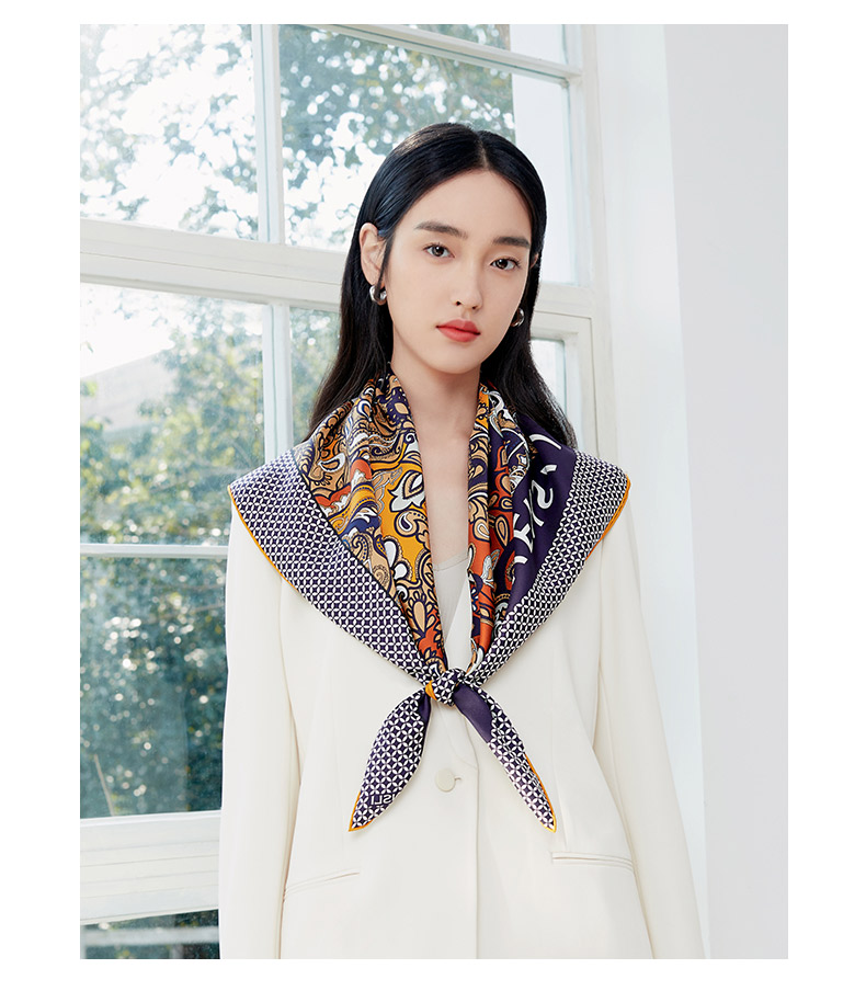 万事利63厘米双面印花真丝中方巾